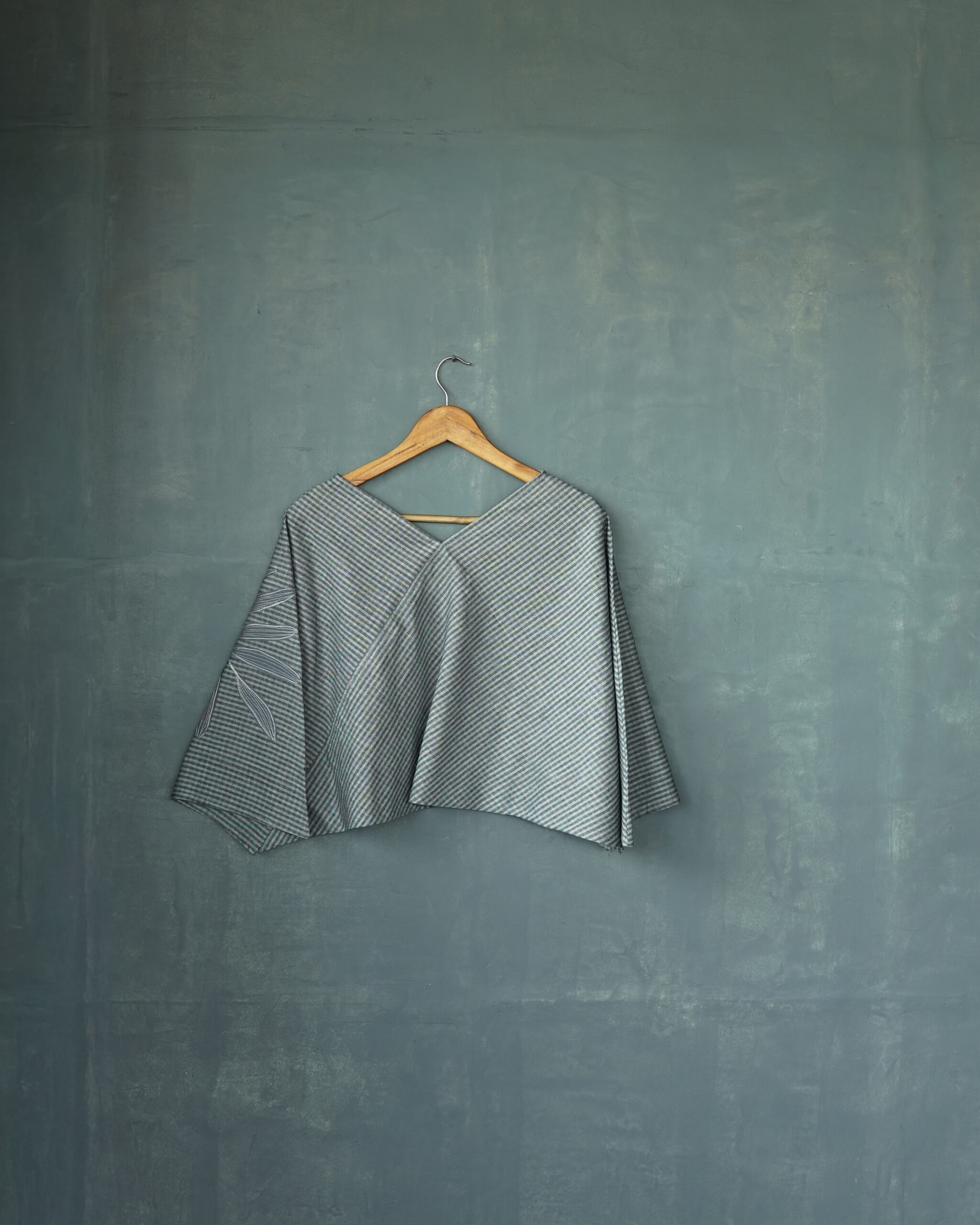 This design is a part of our #everyinchoffabric initiative and unfinished edges are a part of the design sensibility.
