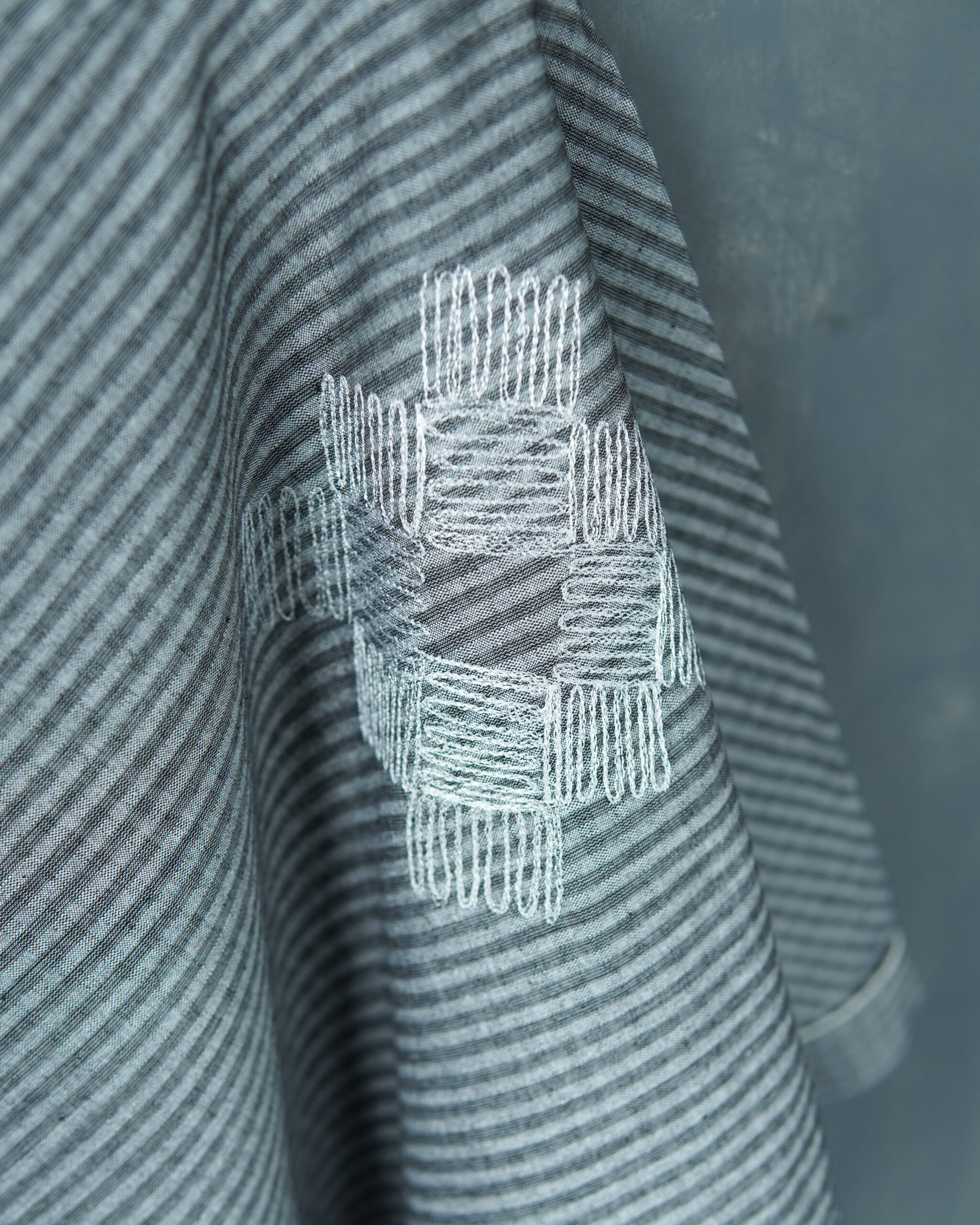 This design is a part of our #everyinchoffabric initiative and unfinished edges are a part of the design sensibility.