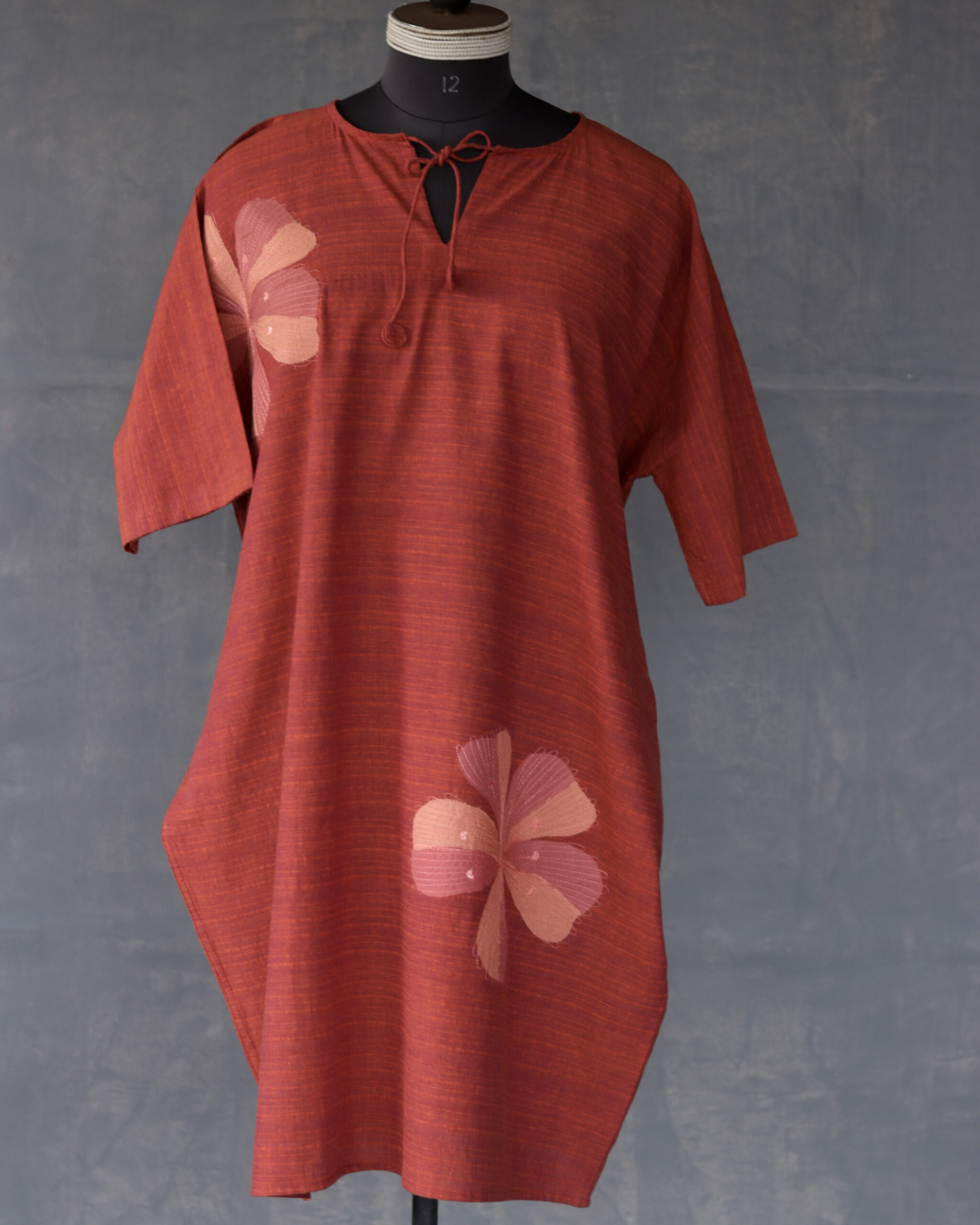 Since this design has multiple pieces of fabric which are appliqued to create this look, to care best for your cloth, we recommend only a dry clean with a reputed drycleaner, soon after use.