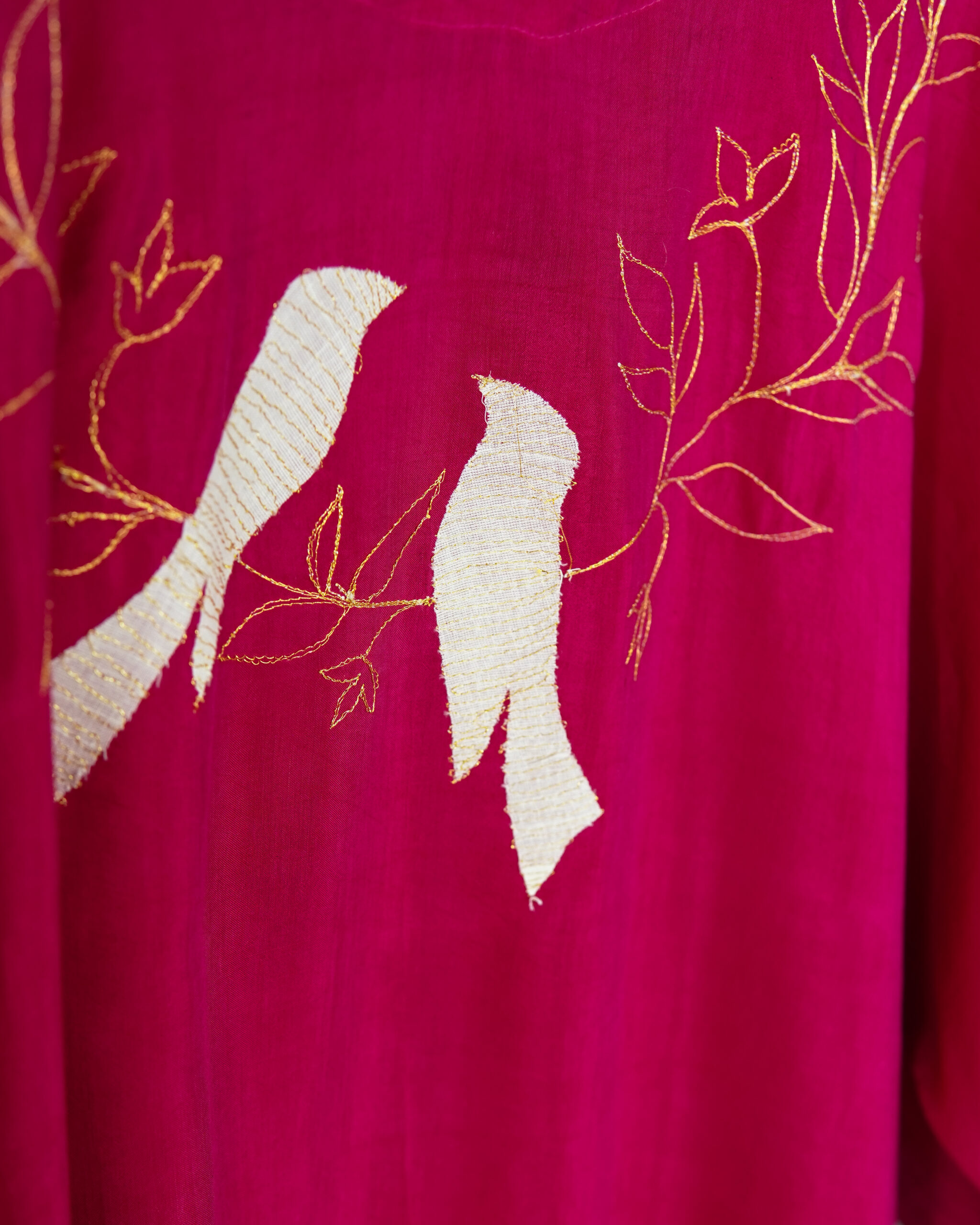 Since this design has multiple pieces of fabric which are appliqued to create this look, to care best for your cloth, we recommend only a dry clean with a reputed drycleaner, soon after use.