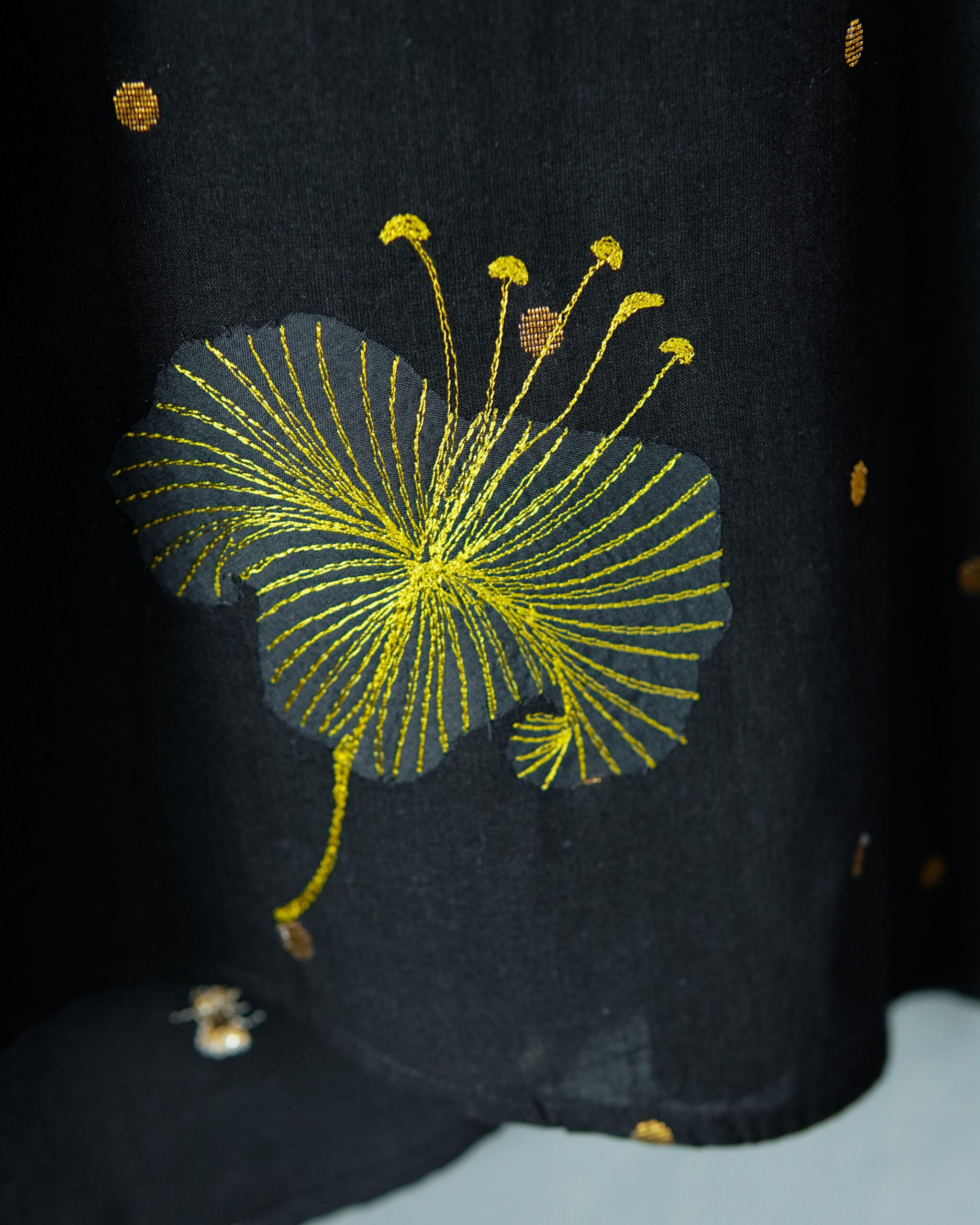 Since this design has multiple pieces of fabric which are appliqued to create this look, to care best for your cloth, we recommend only a dry clean with a reputed drycleaner, soon after use.