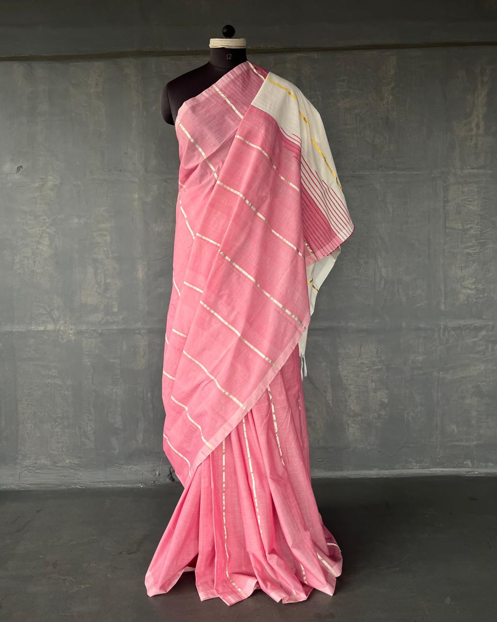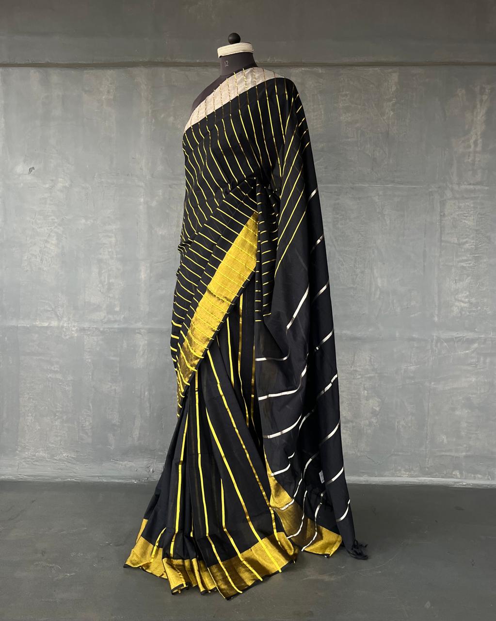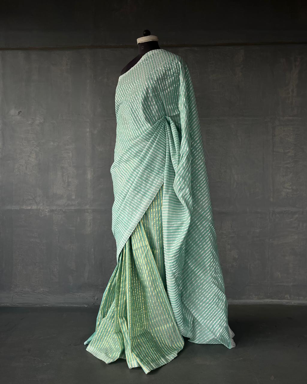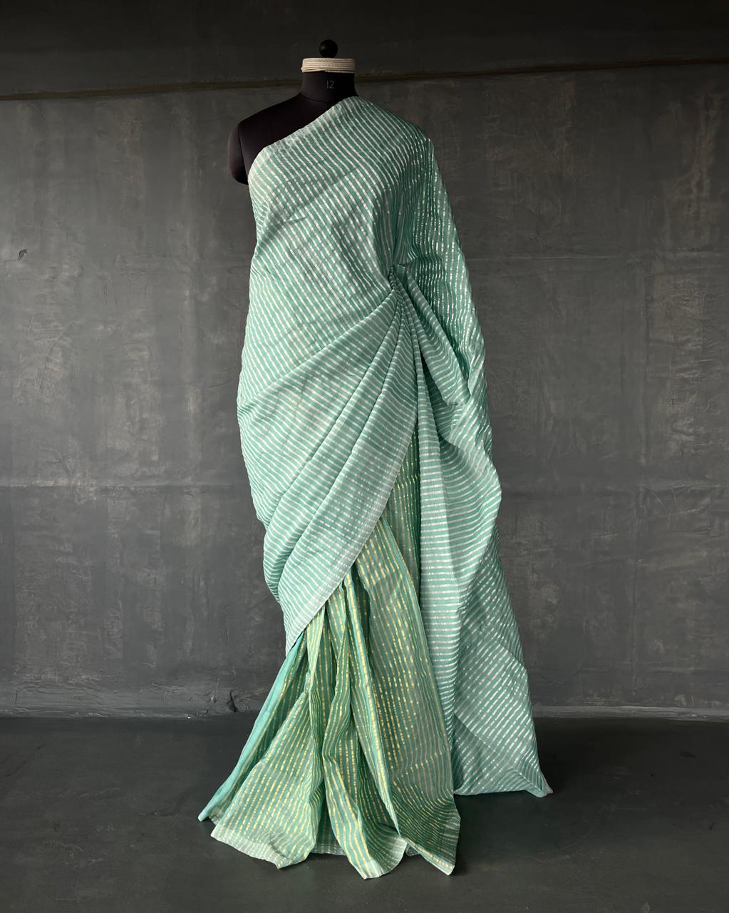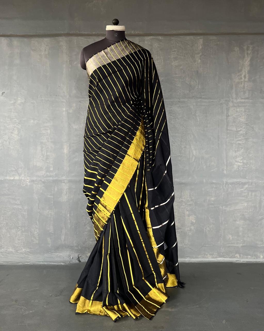 This saree is a part of our #everyinchoffabric initiative and unfinished edges are a part of the design sensibility.