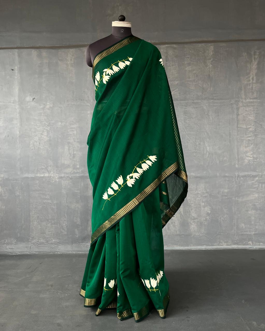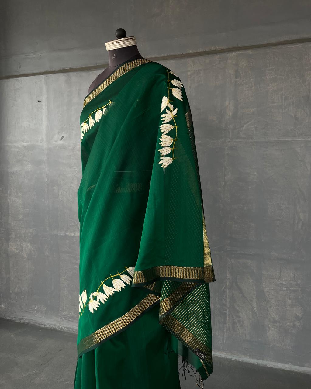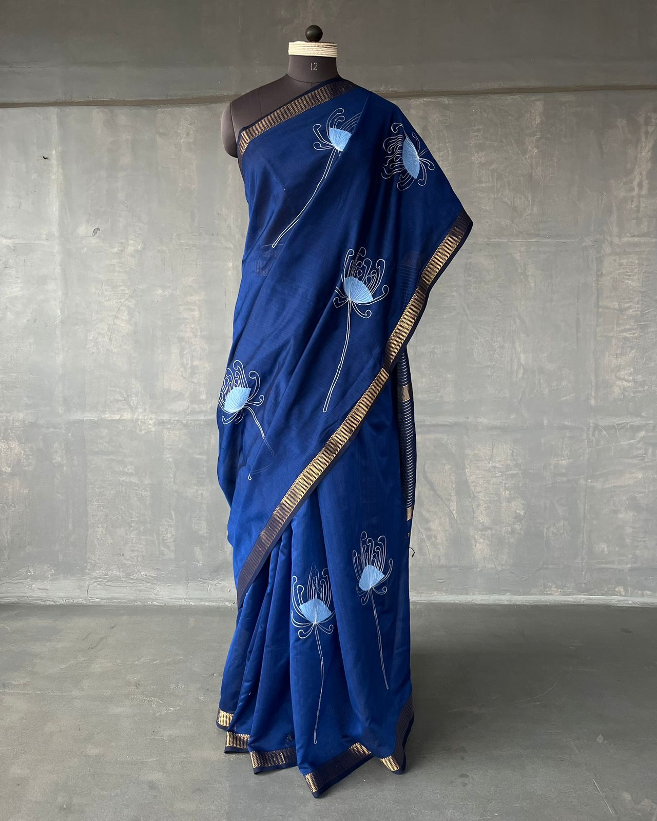 PURE COTTON SILK SAREE WITH FLORAL APPLIQUÉD DETAILS