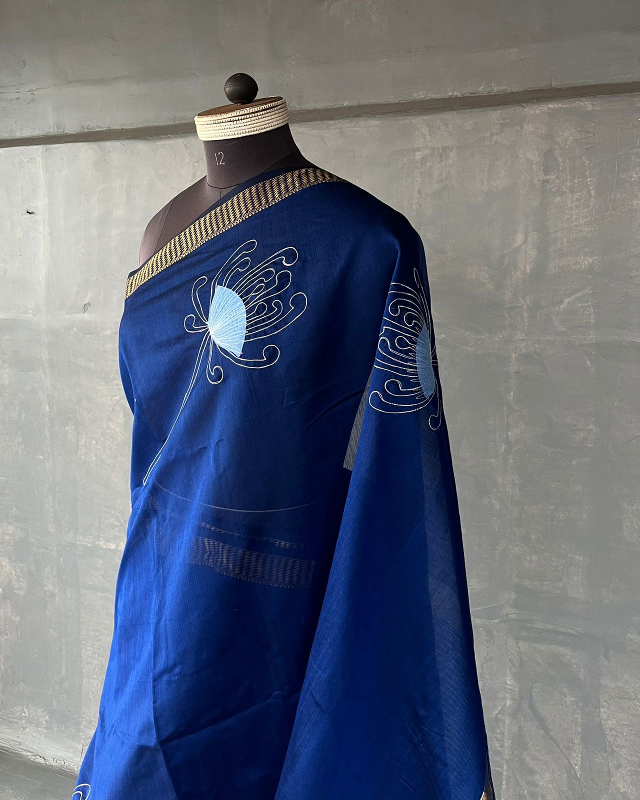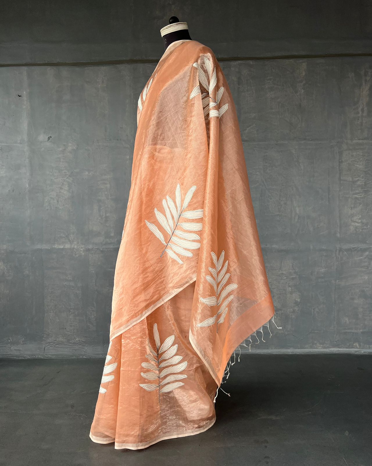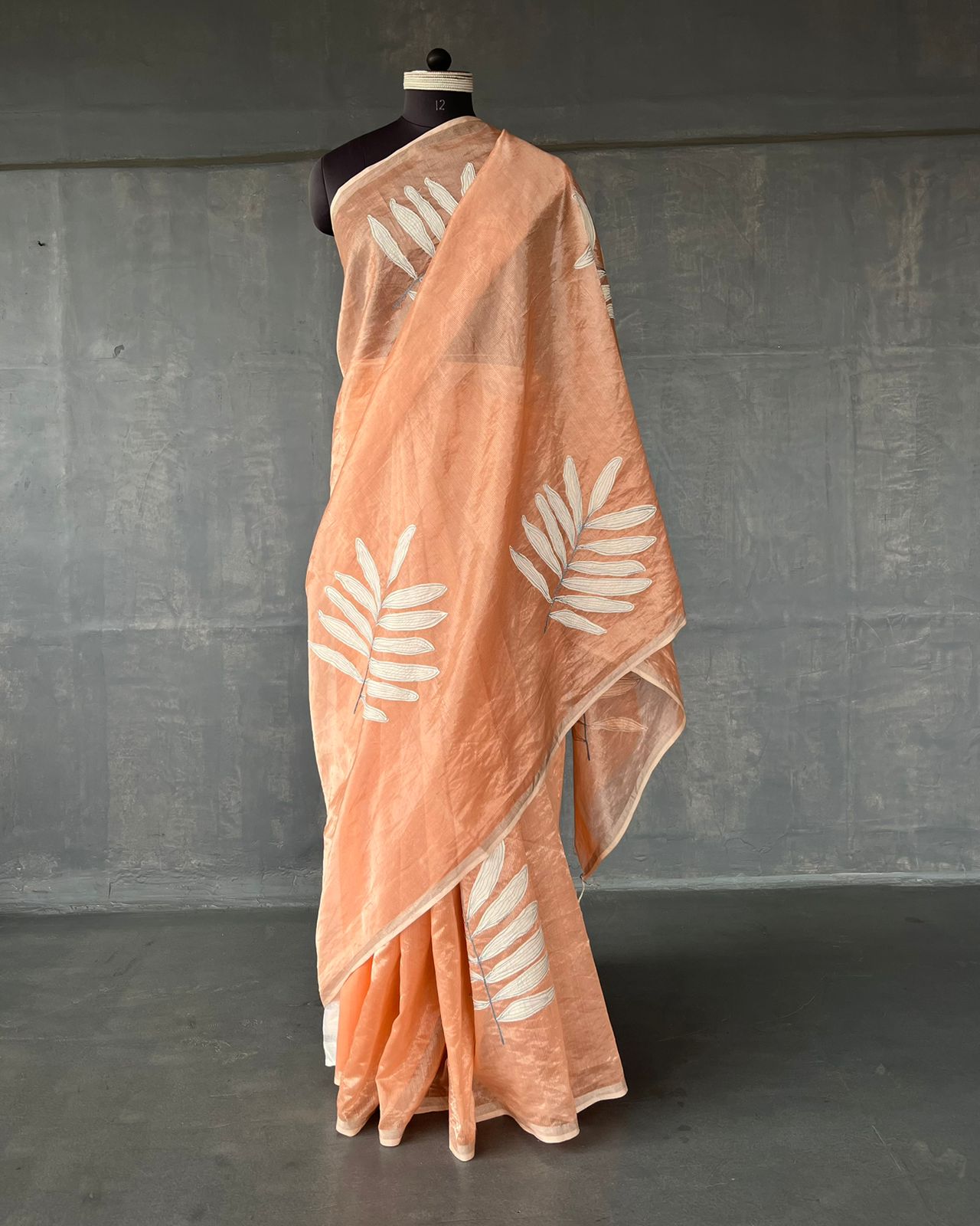 PURE COTTON SILK SAREE WITH FLORAL APPLIQUÉD DETAILS