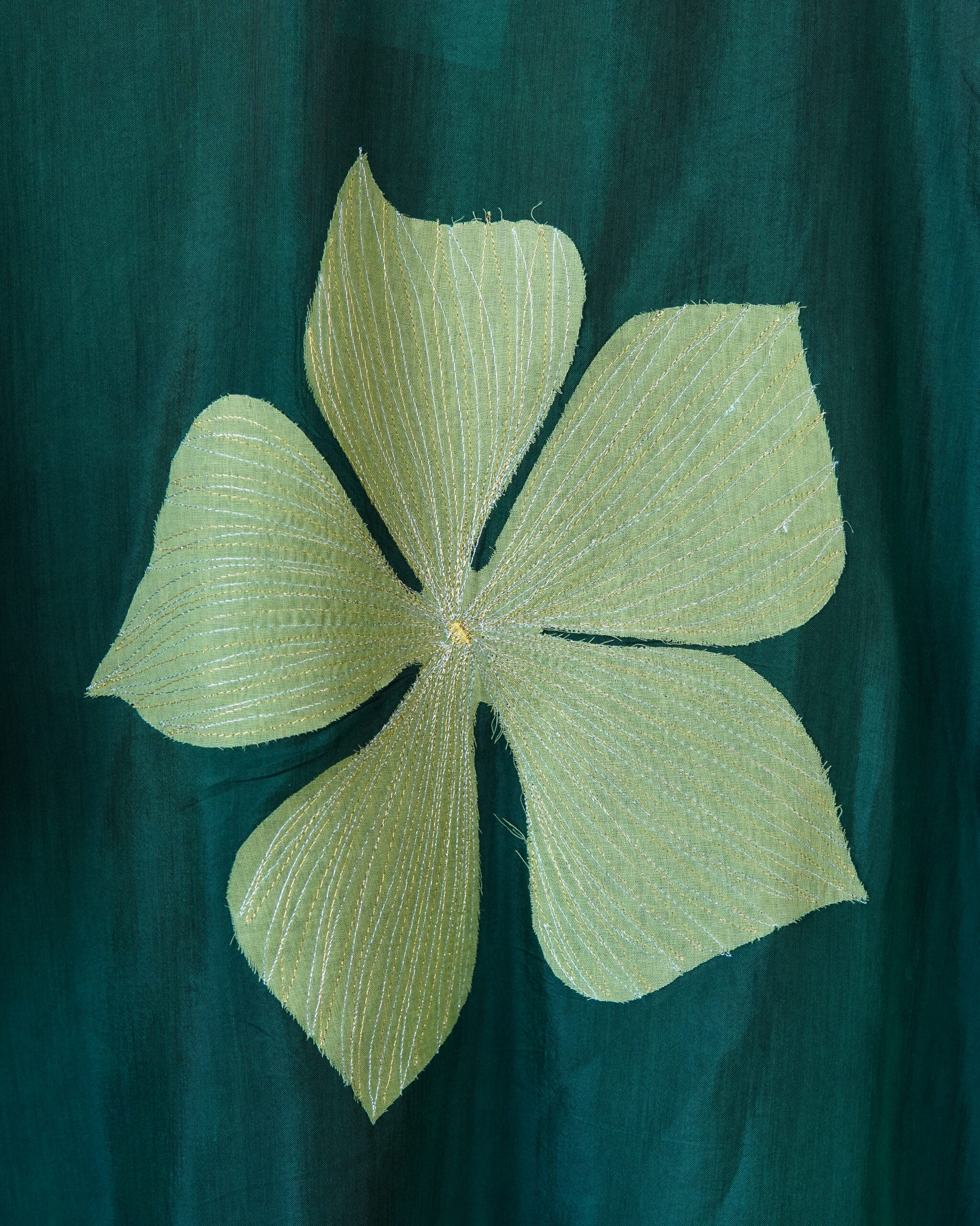 Since this design has multiple pieces of fabric which are appliqued to create this look, to care best for your cloth, we recommend only a dry clean with a reputed drycleaner, soon after use.