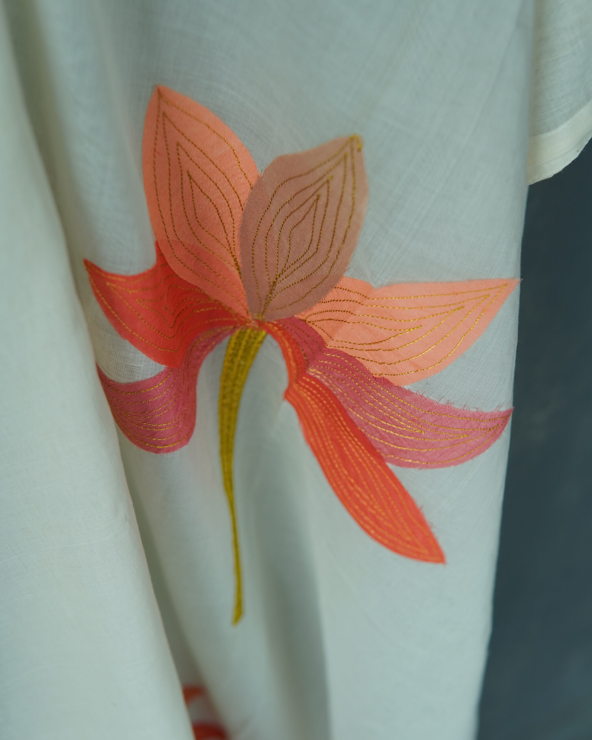 Since this design has multiple pieces of fabric which are appliqued to create this look, to care best for your cloth, we recommend only a dry clean with a reputed drycleaner, soon after use.