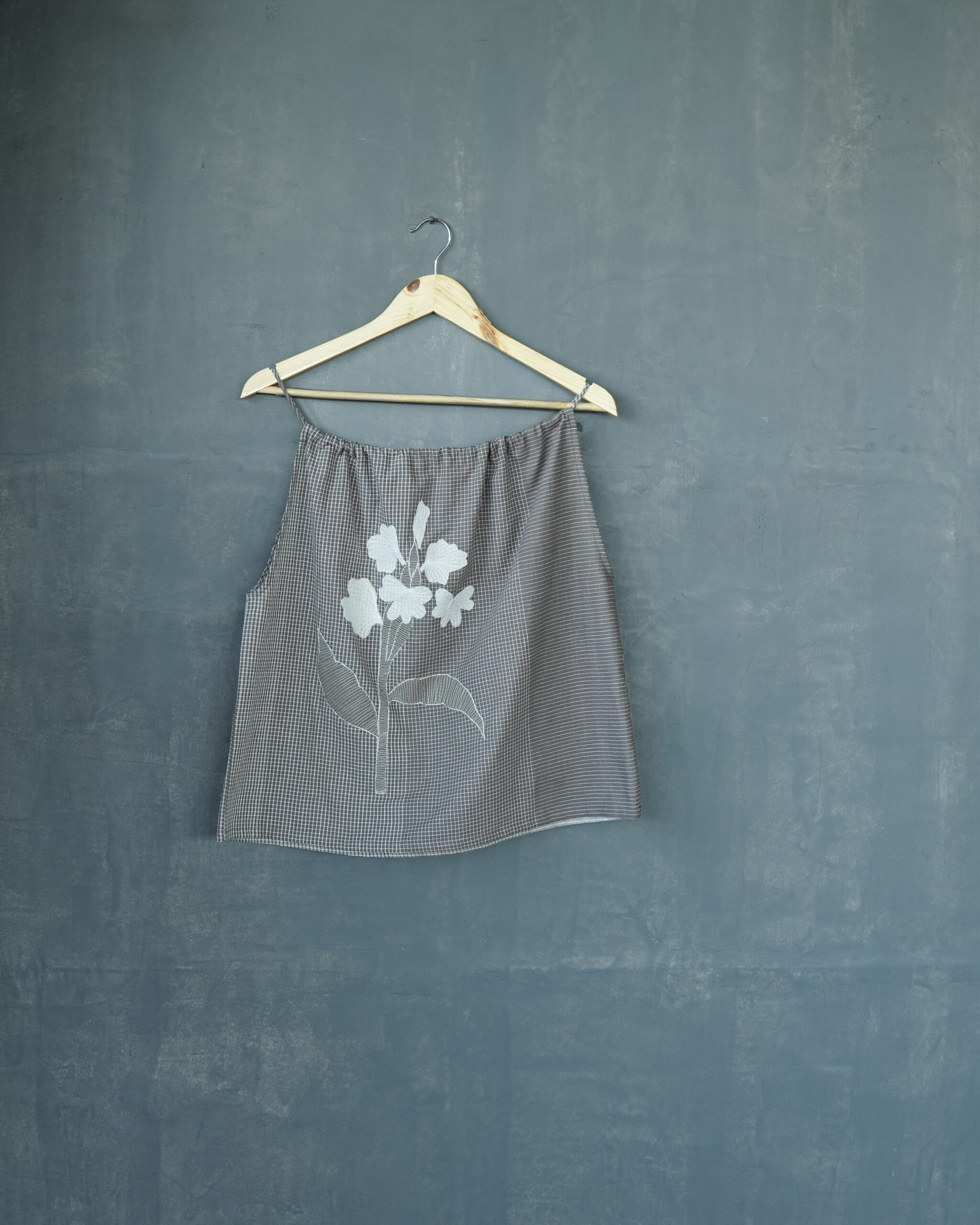 This design is a part of our #everyinchoffabric initiative and unfinished edges are a part of the design sensibility.