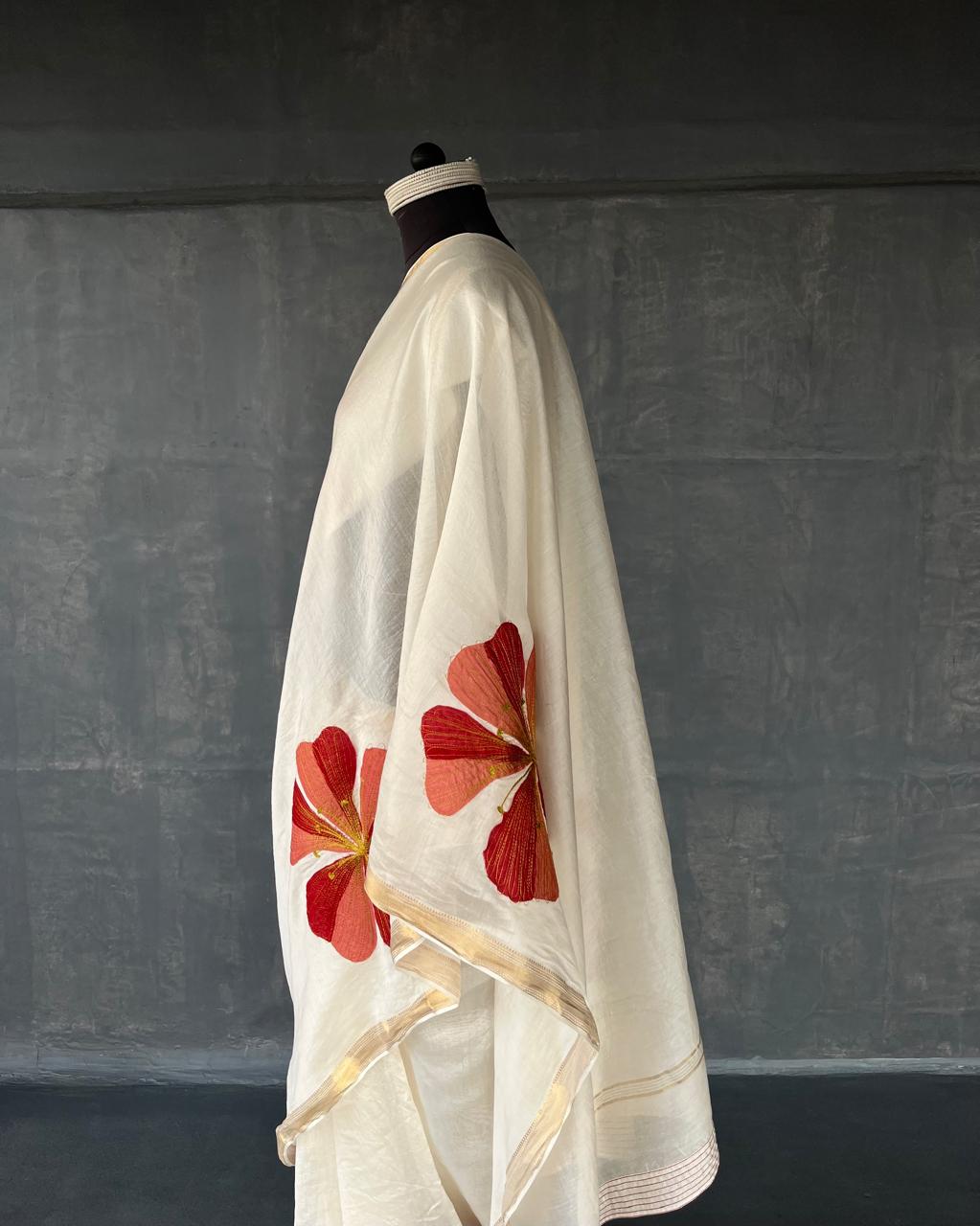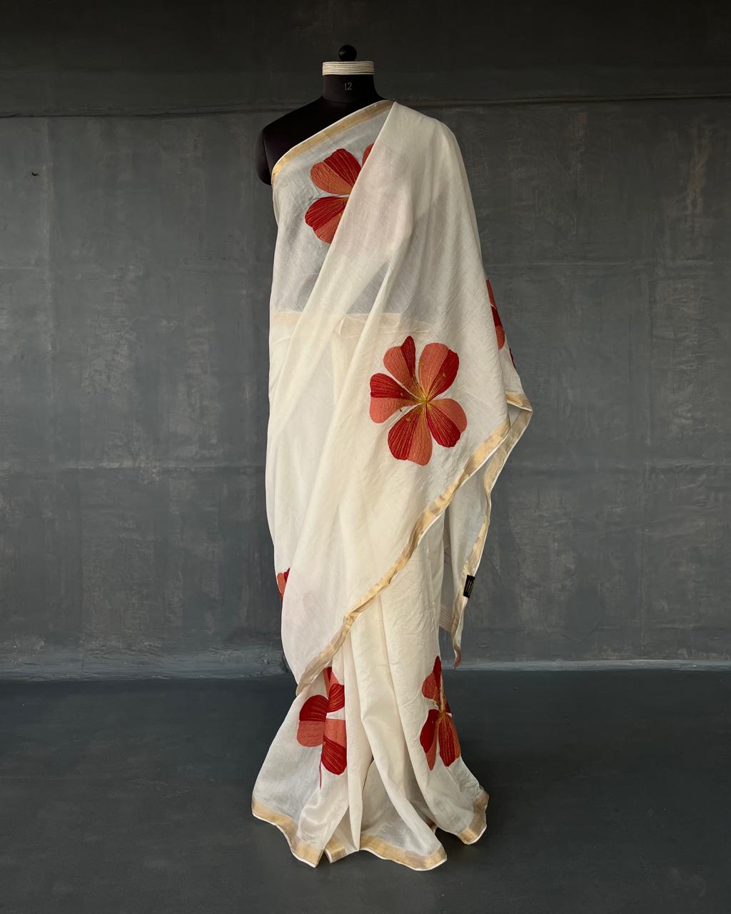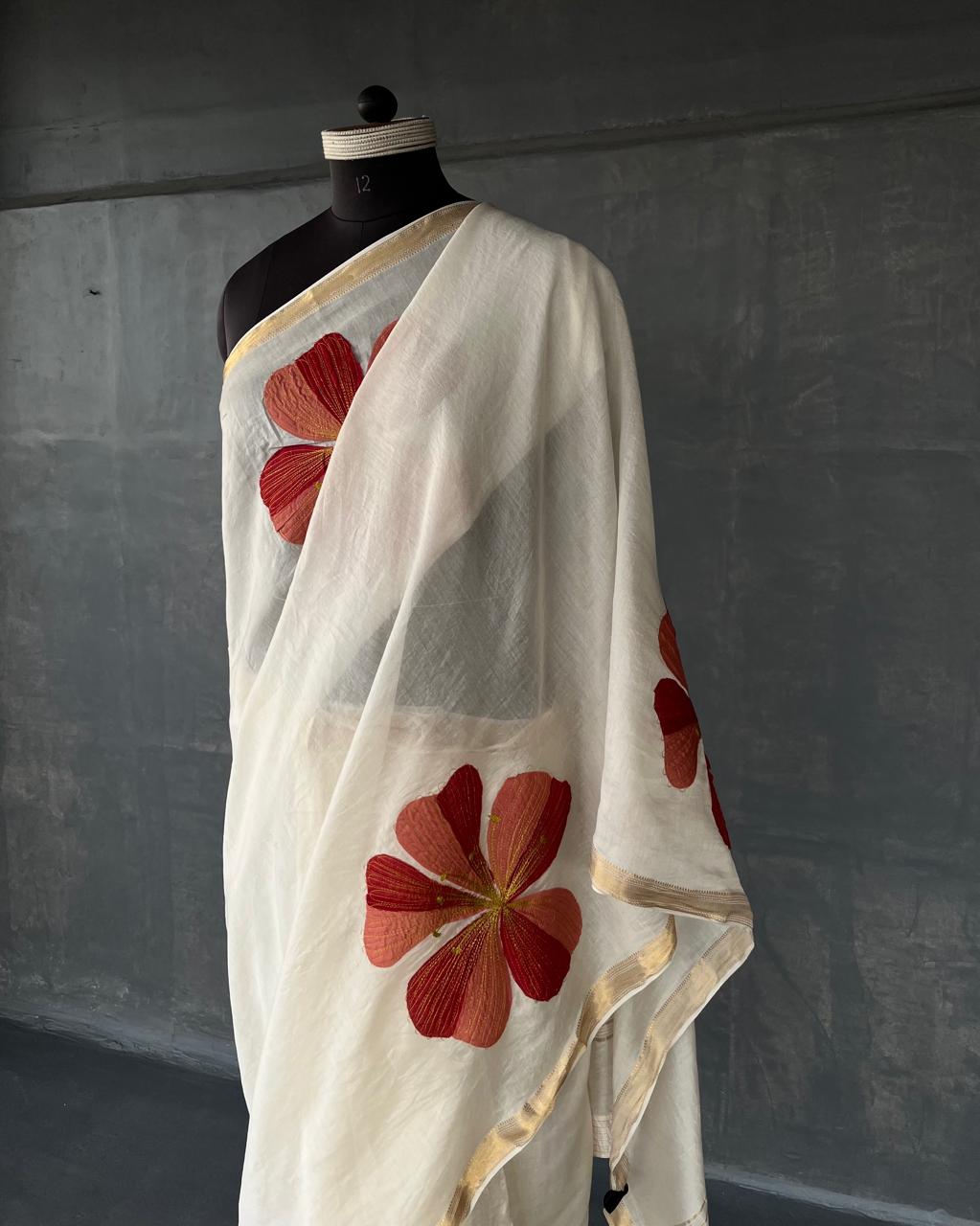 CHANDERI TISSUE SAREE WITH APPLIQUÉD DETAILS