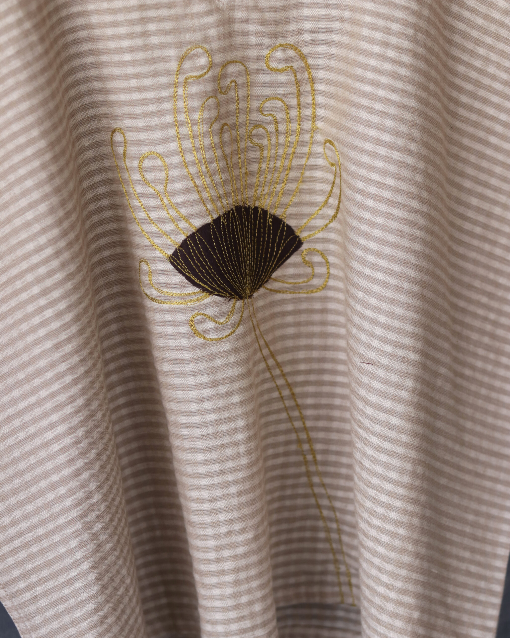 Since this design has multiple pieces of fabric which are appliqued to create this look, to care best for your cloth, we recommend only a dry clean with a reputed drycleaner, soon after use.