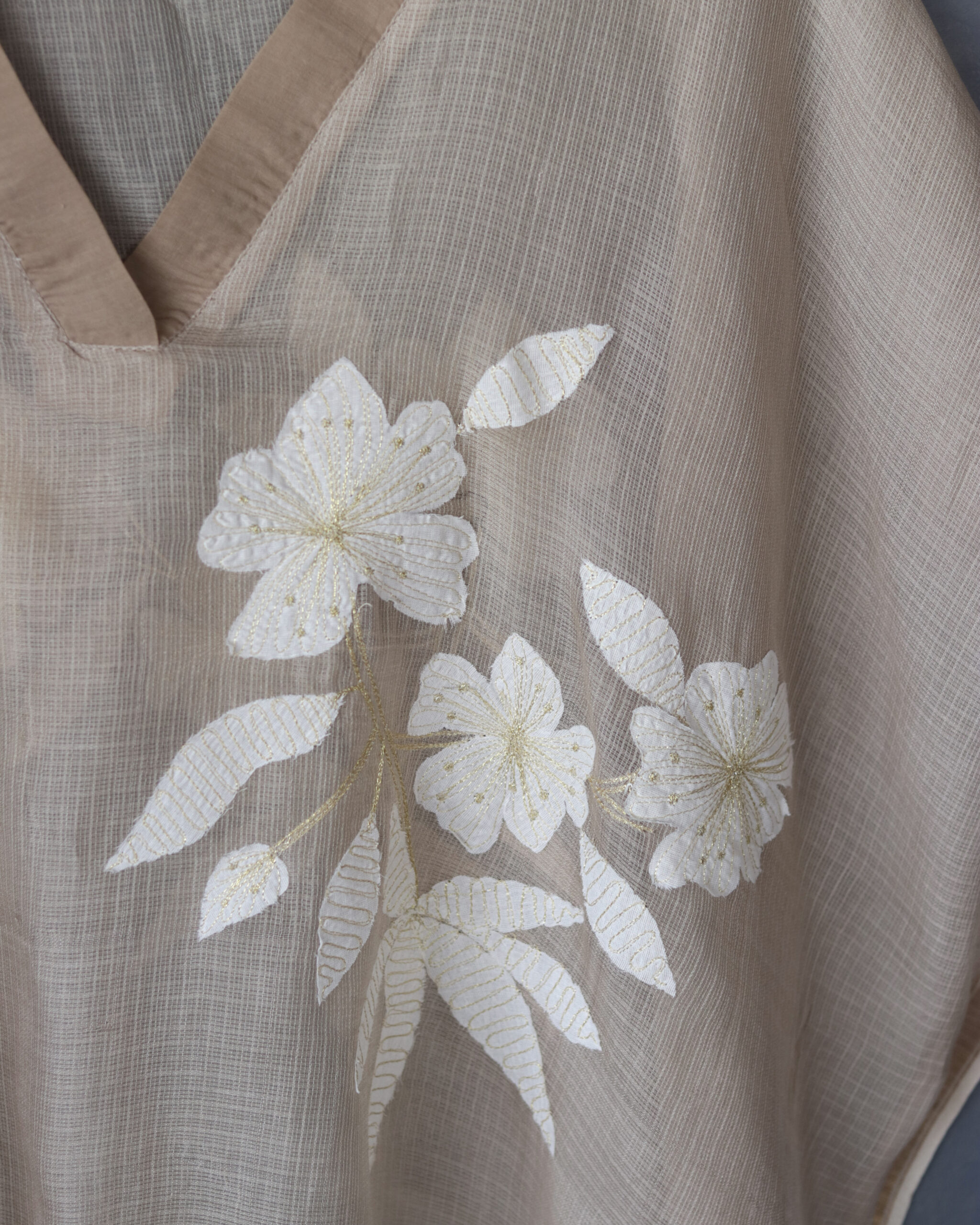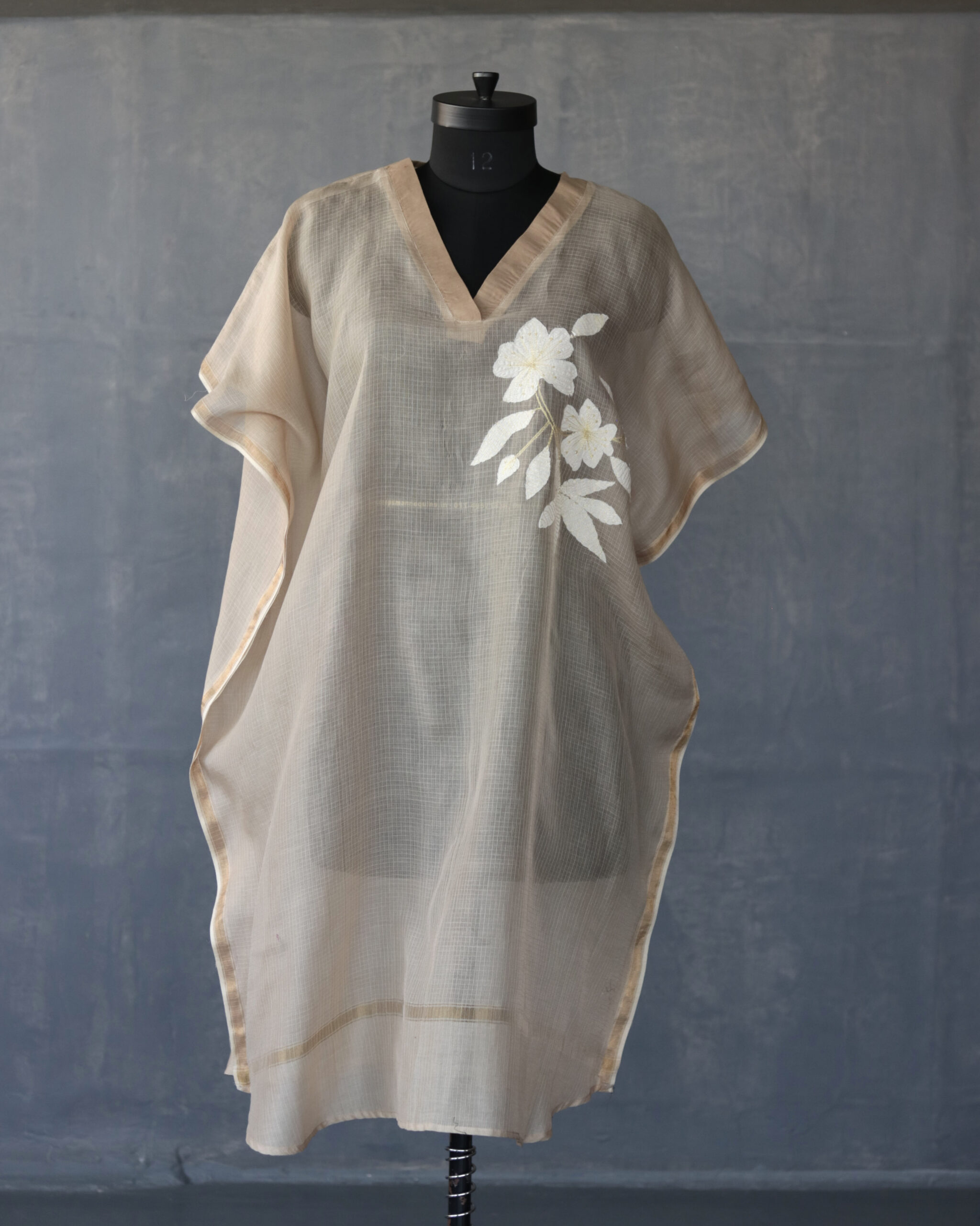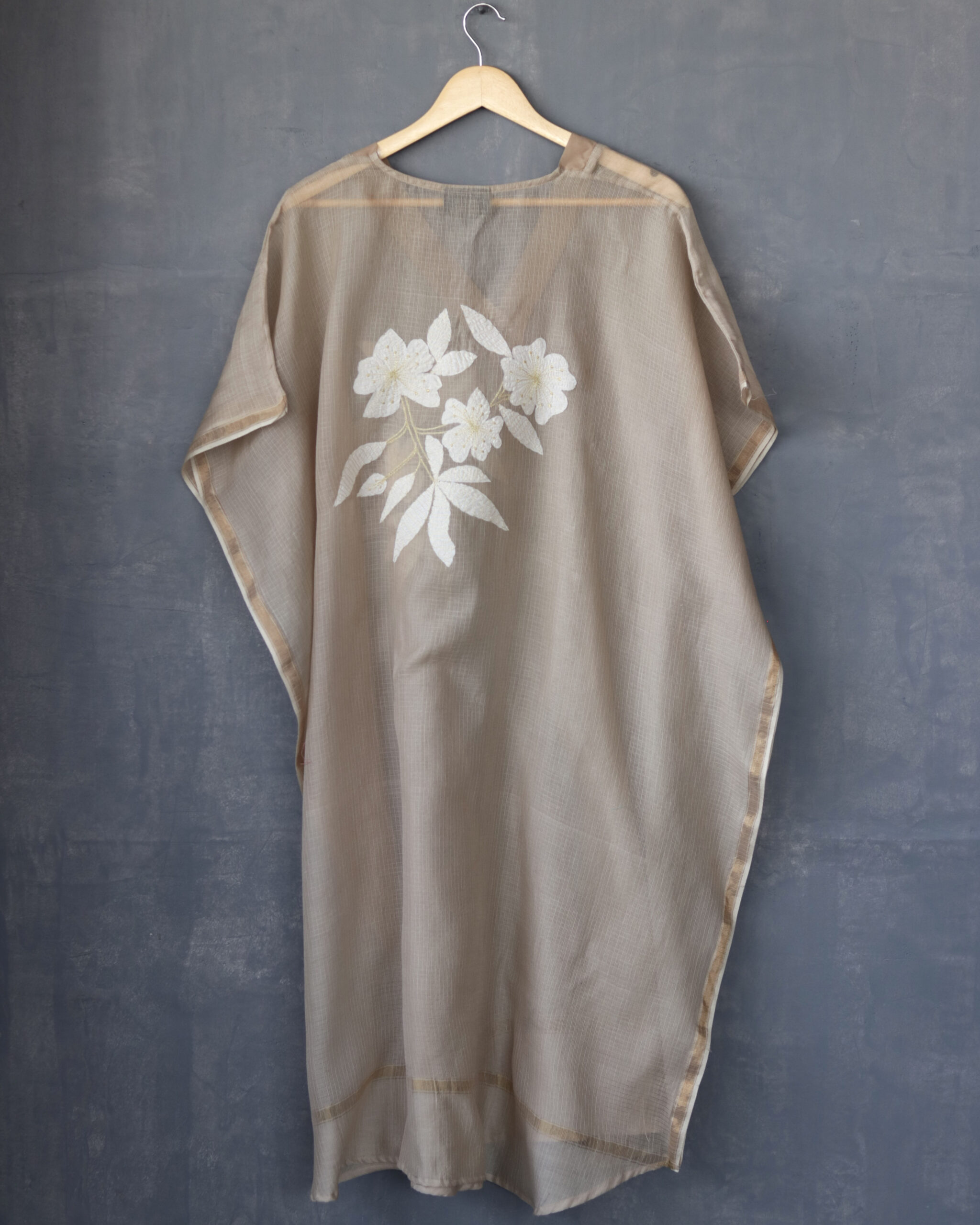 Since this design has multiple pieces of fabric which are appliqued to create this look, to care best for your cloth, we recommend only a dry clean with a reputed drycleaner, soon after use.