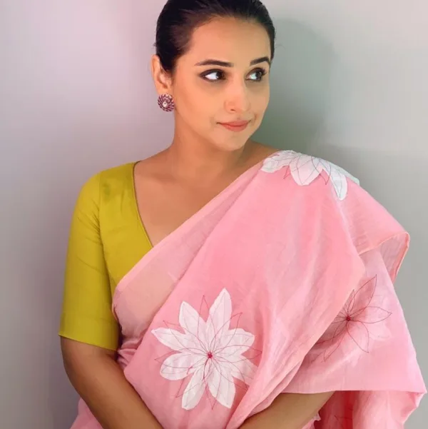 PURE COTTON SILK SAREE WITH FLORAL APPLIQUÉD DETAILS