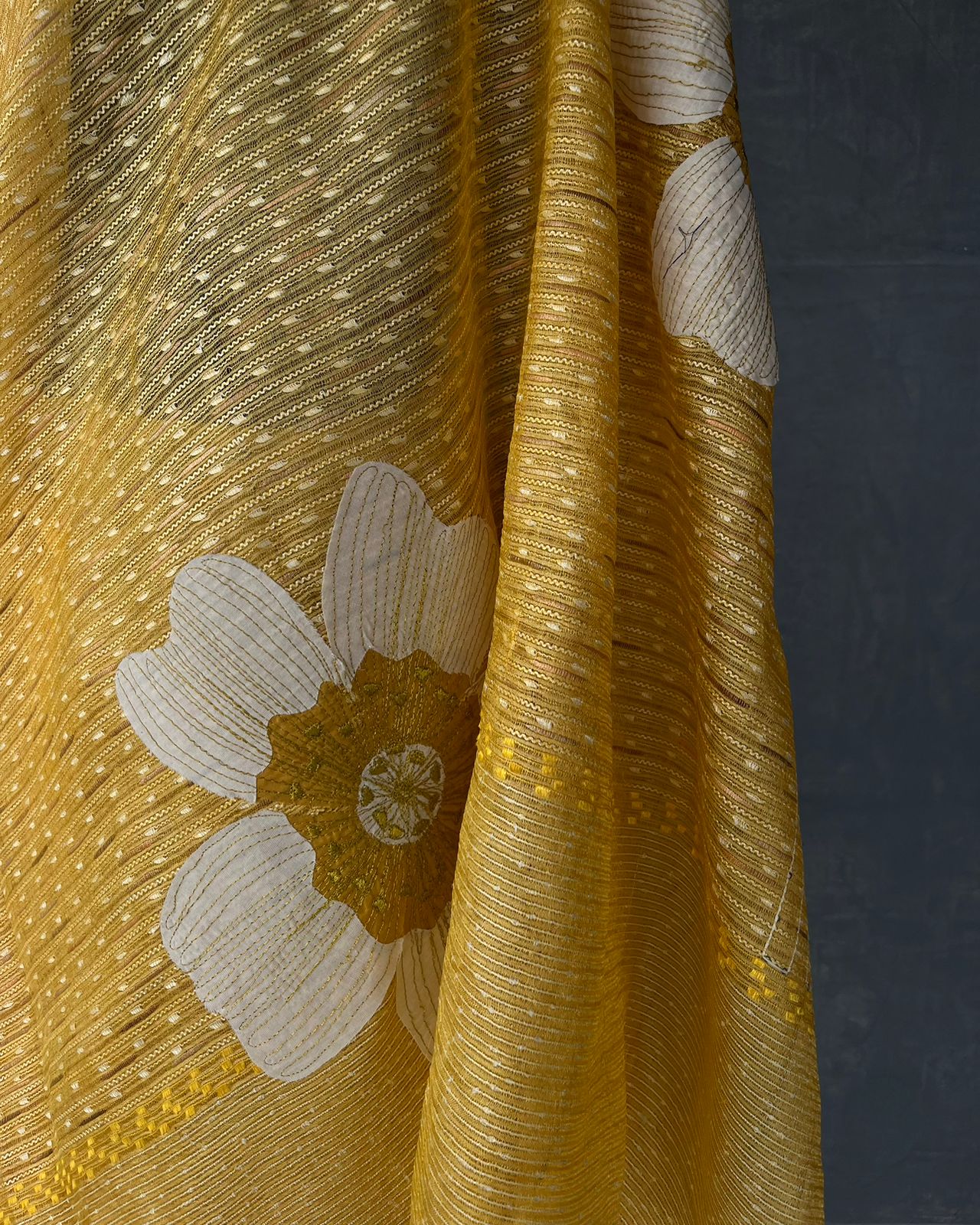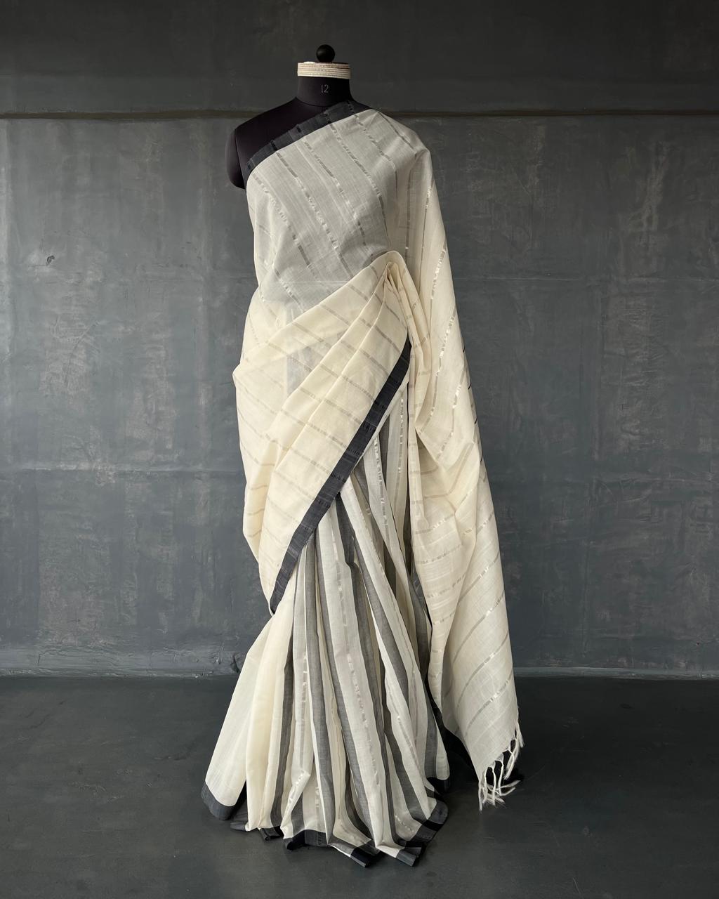 This saree is a part of our #everyinchoffabric initiative and unfinished edges are a part of the design sensibility.