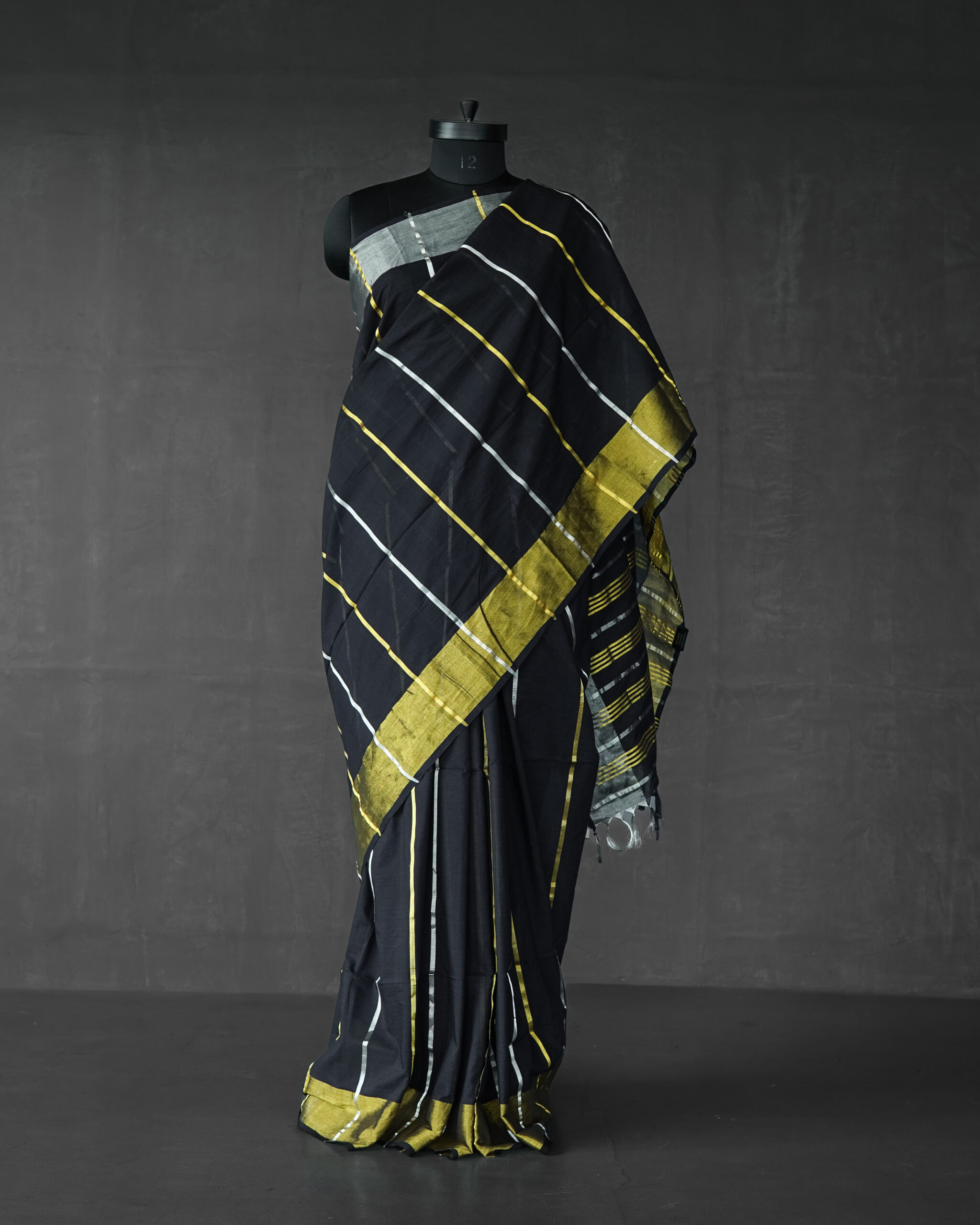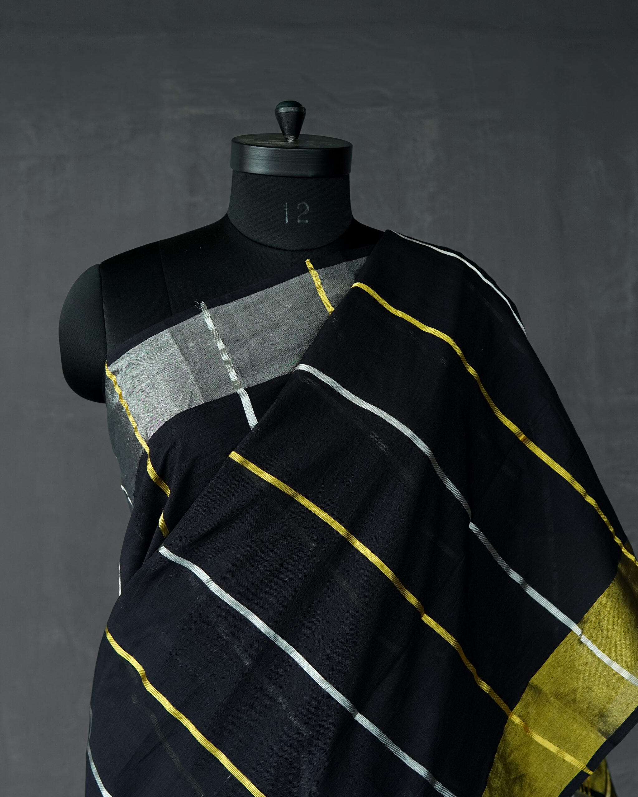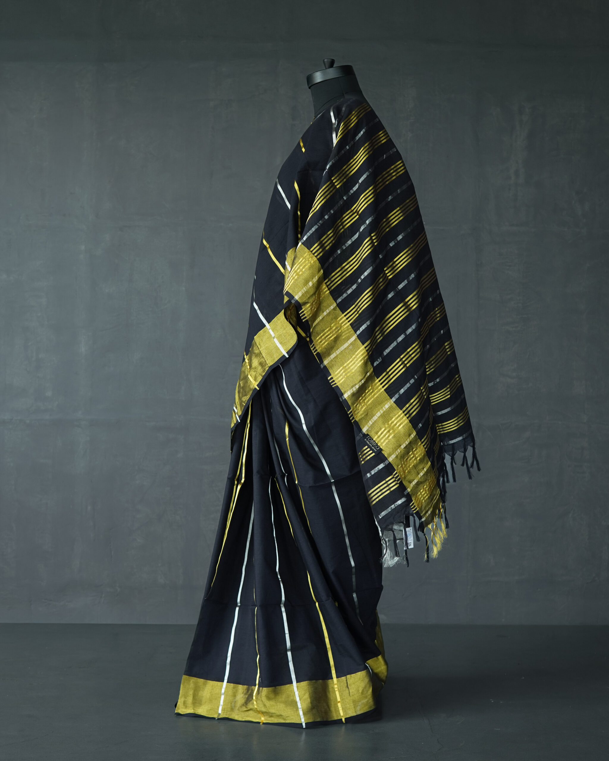 This saree is part of the contemporary wear from the Rouka Timeless range. This saree is a part of our #everyinchoffabric initiative and unfinished edges are a part of the design sensibility.