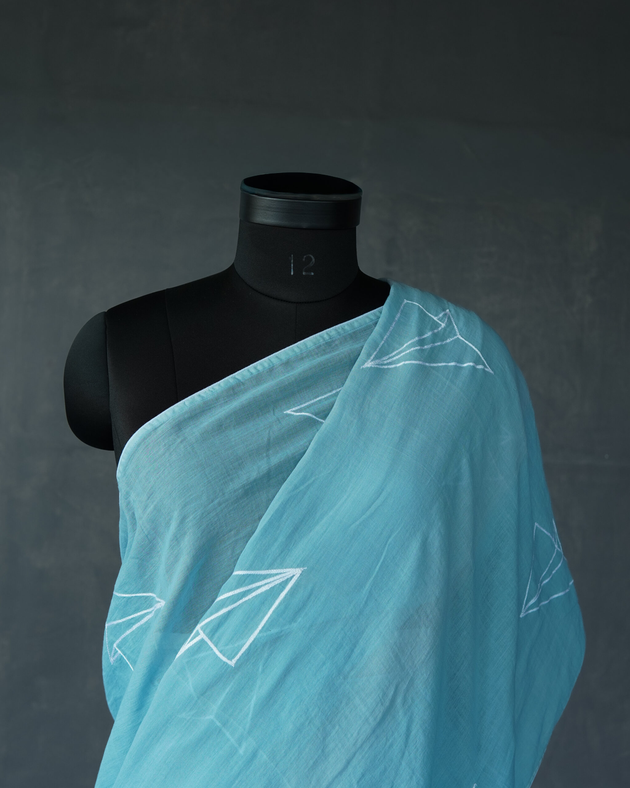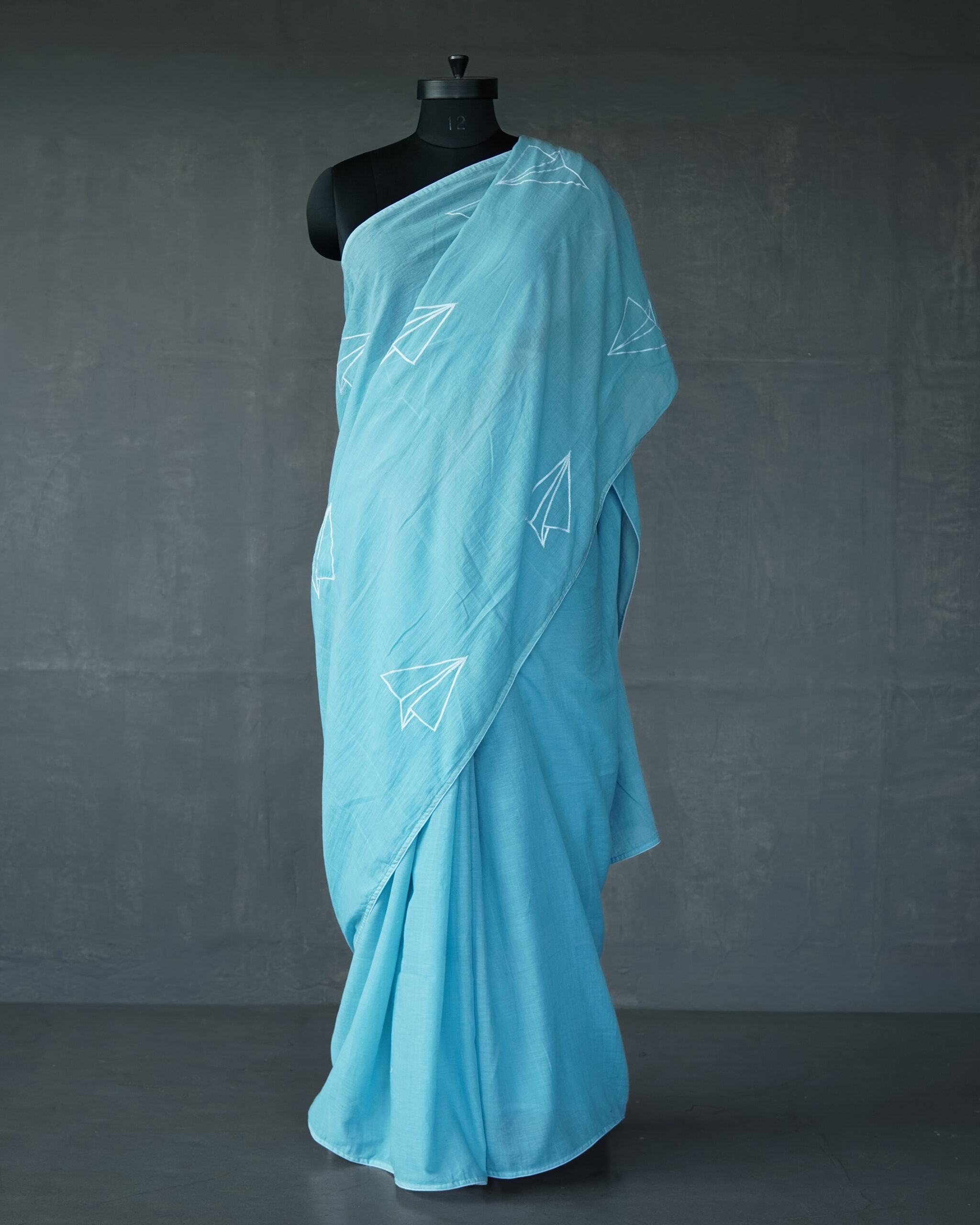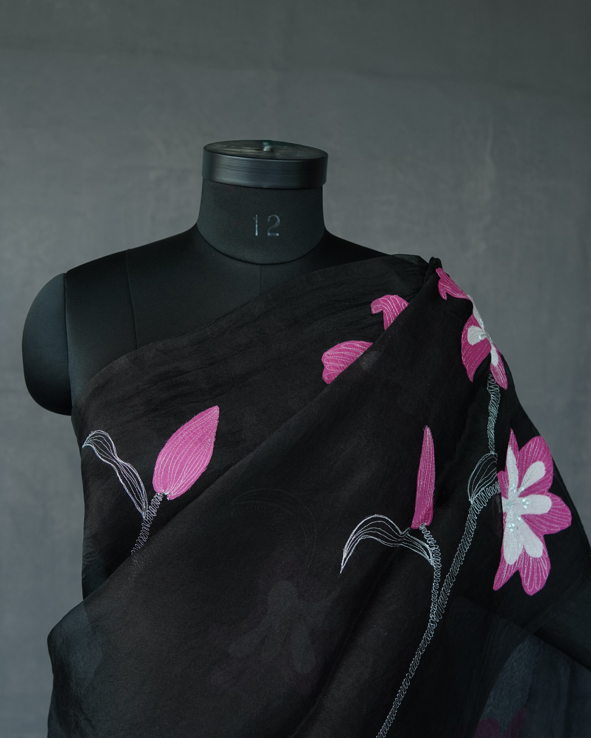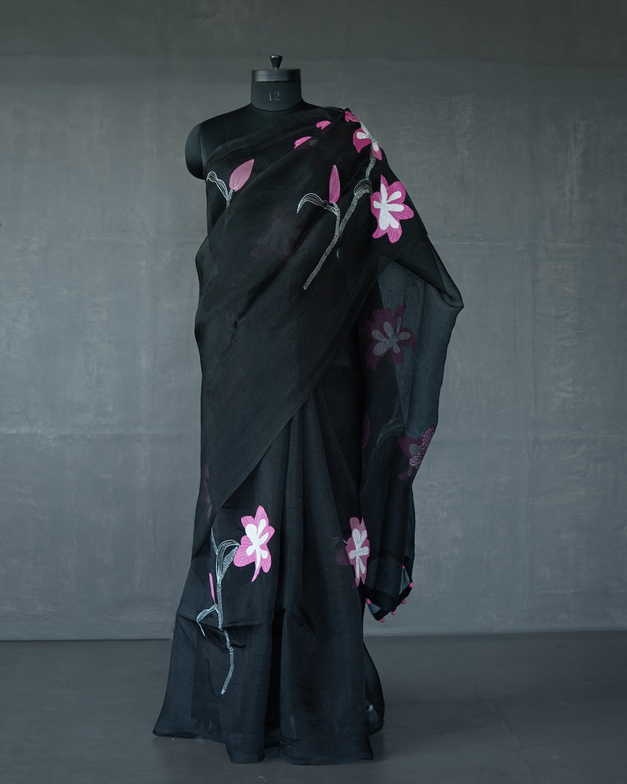COTTON SAREE WITH FLORAL APPLIQUÉD DETAILS