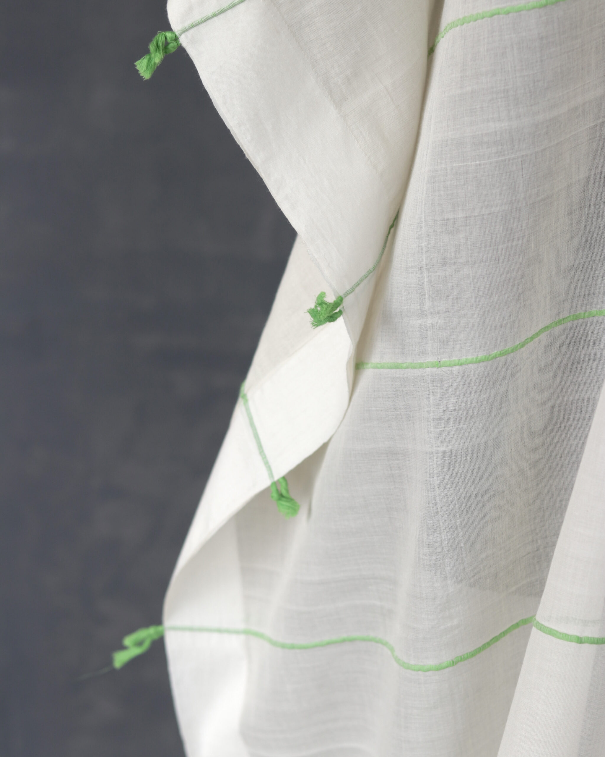 This design is a part of our #everyinchoffabric initiative and unfinished edges are a part of the design sensibility.