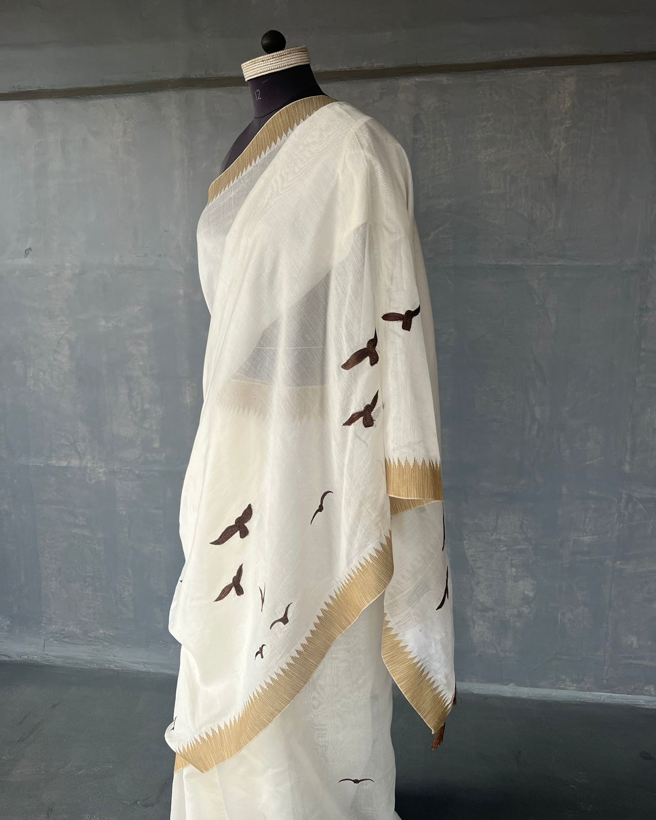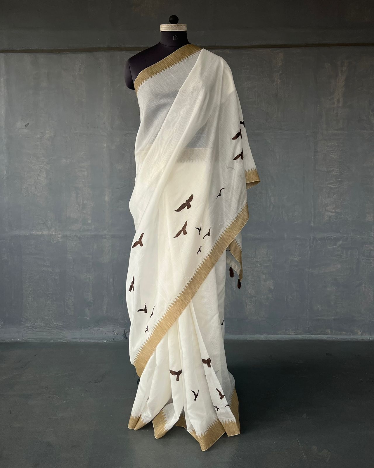 PURE COTTON SILK SAREE WITH STATEMENT EMBROIDERY