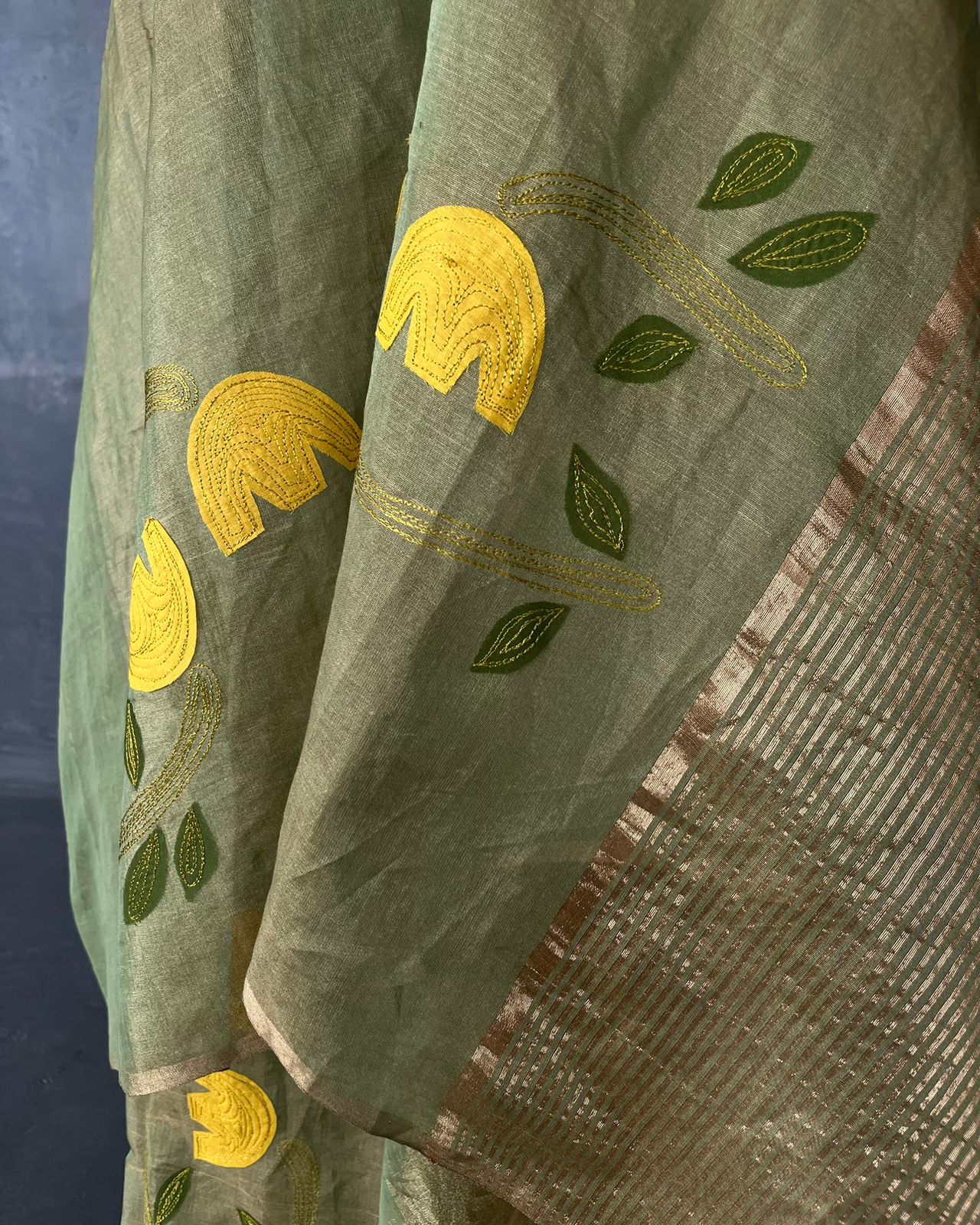 HANDWOVEN COTTON SILK TISSUE SAREE WITH APPLIQUÉD DETAILS