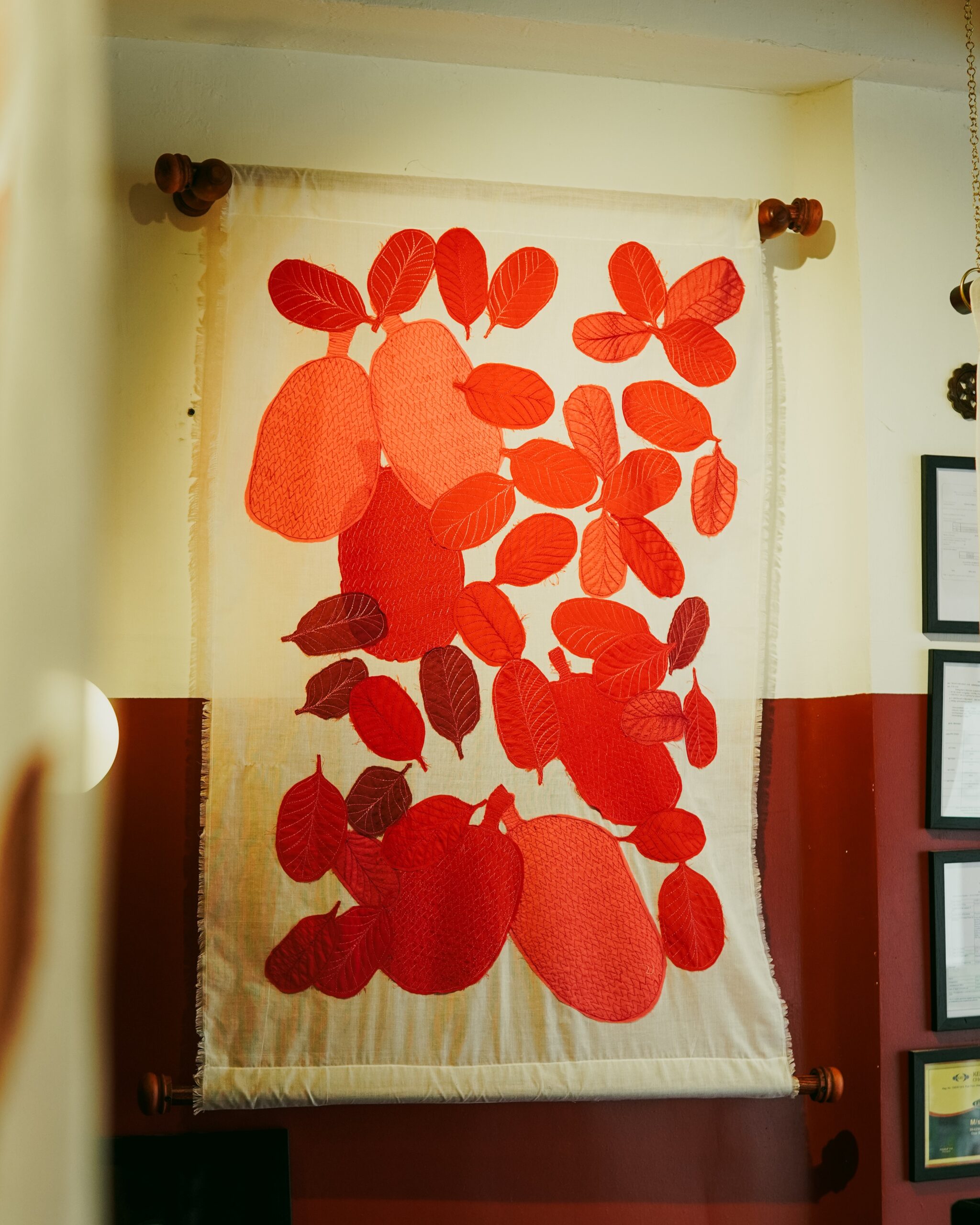 UNFRAMED ART WORK WITH APPLIQUÉD AND EMBROIDERED DETAILS