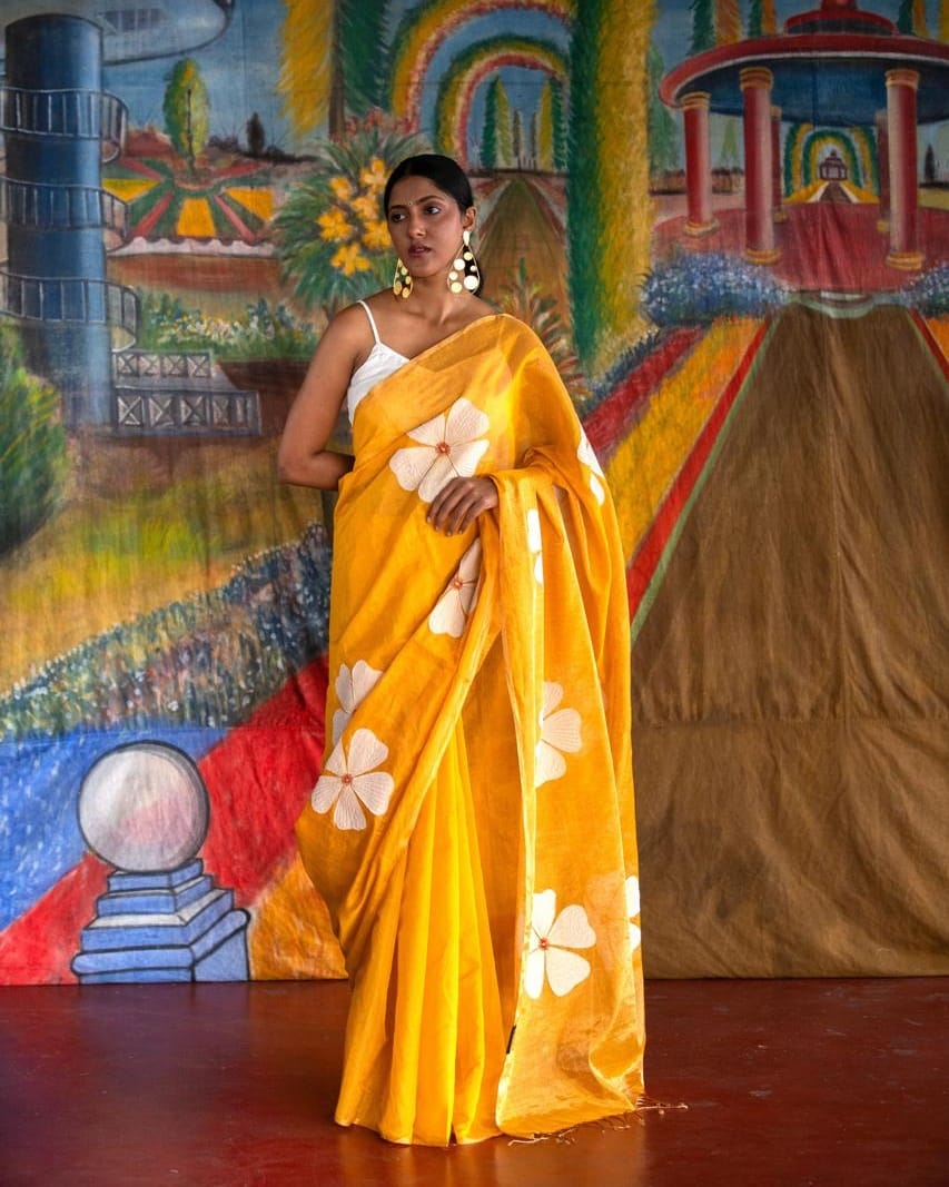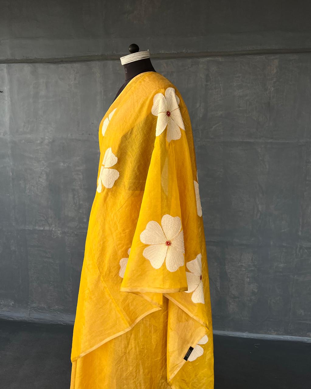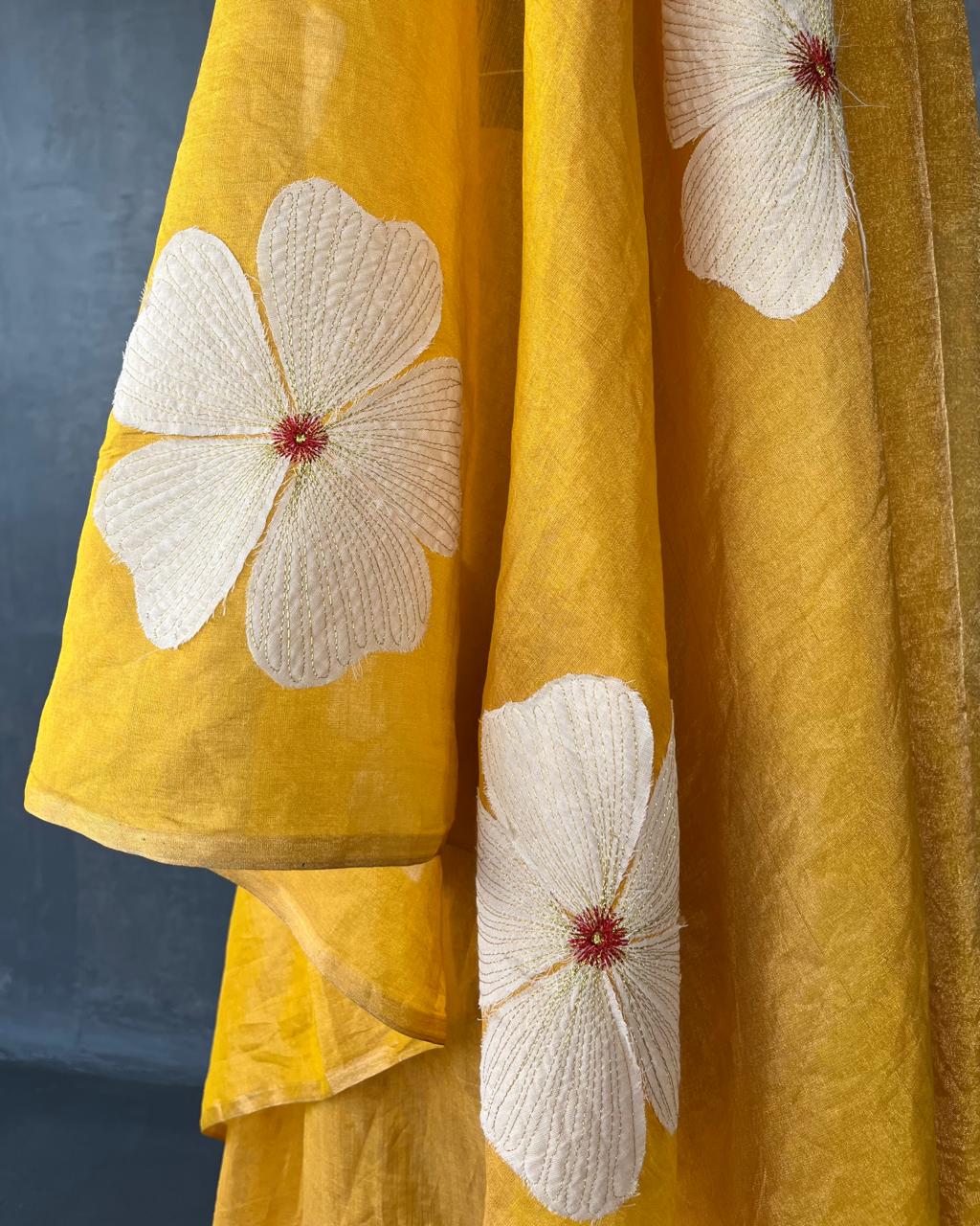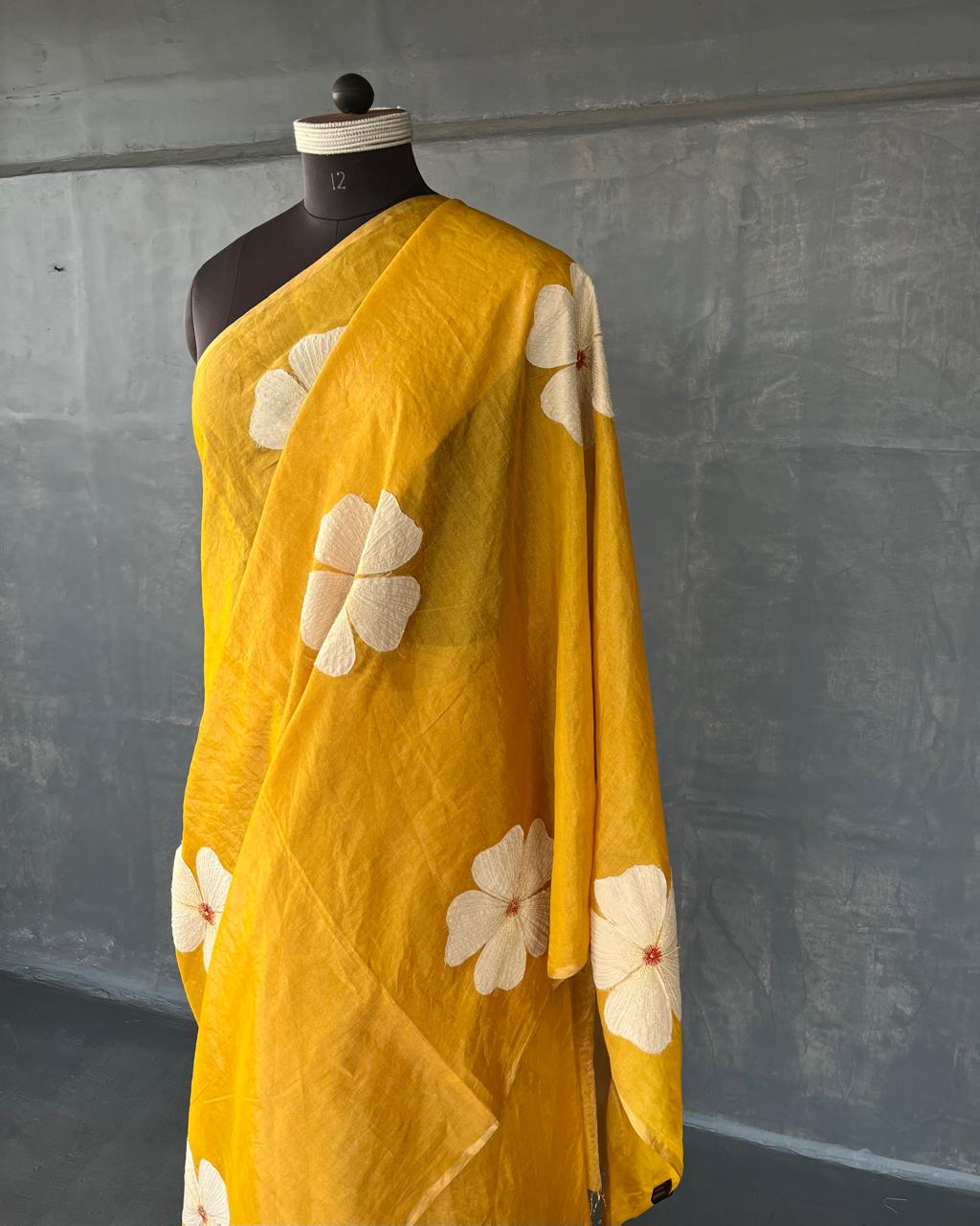CHANDERI TISSUE SAREE WITH FLORAL APPLIQUÉD DETAILS