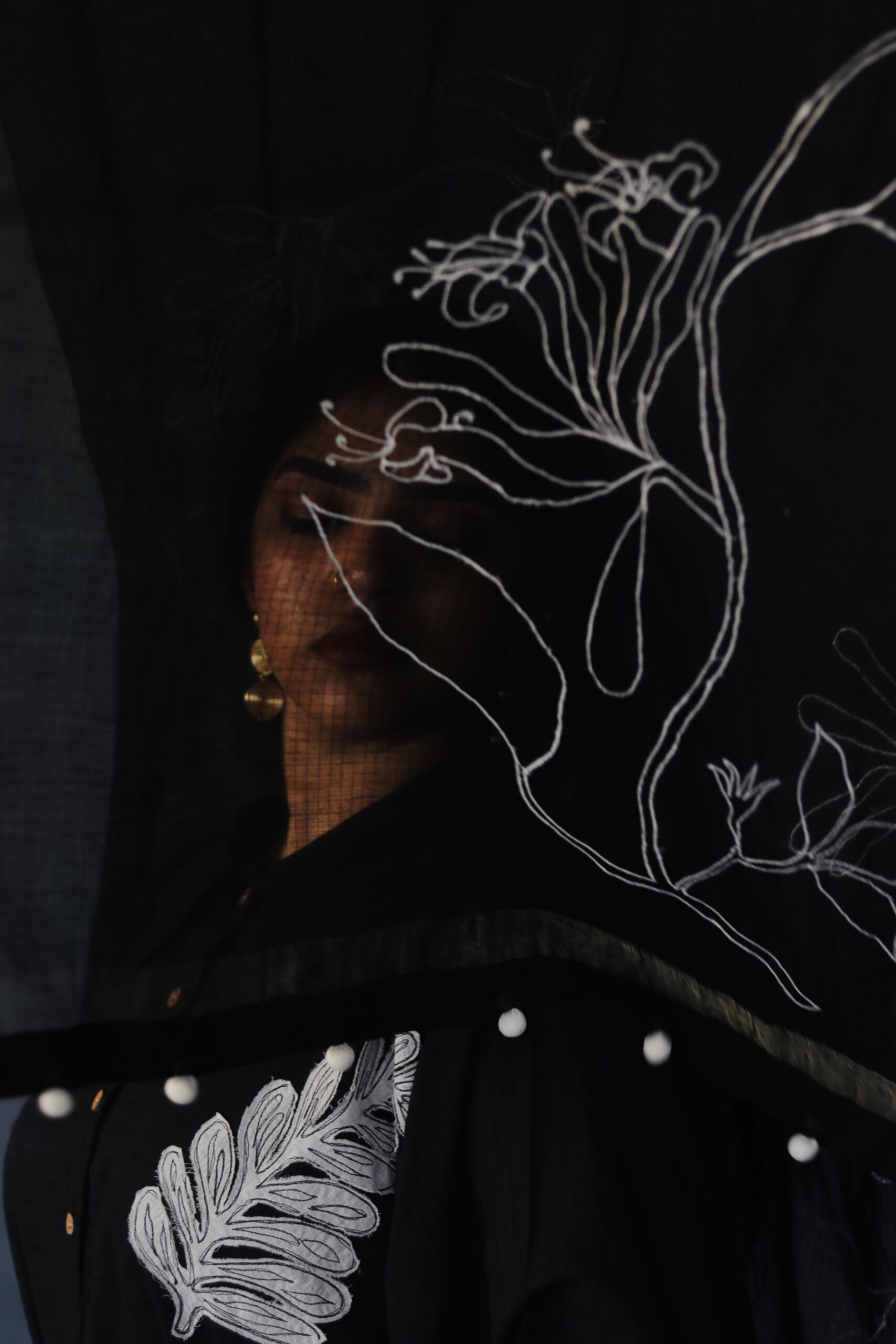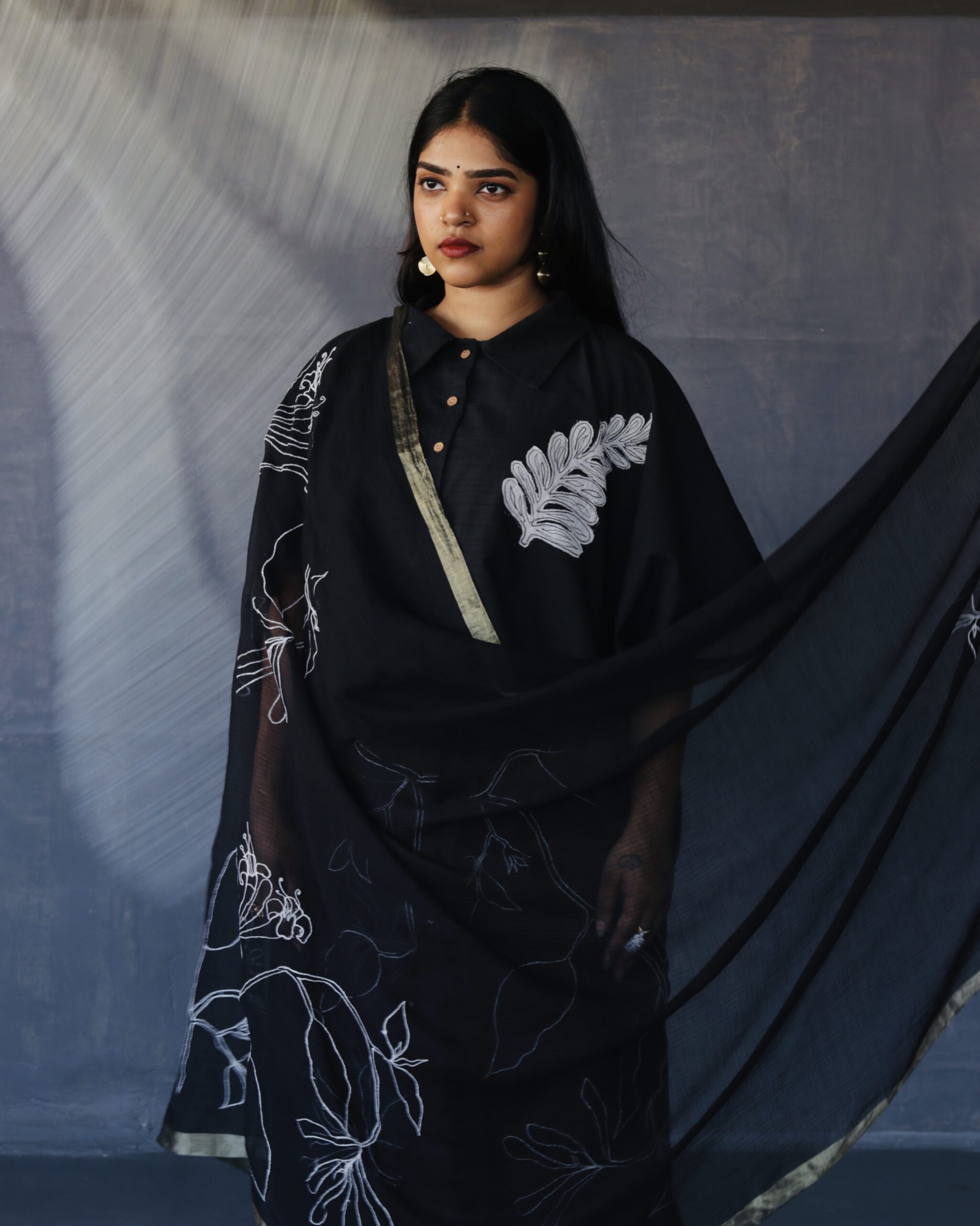 This saree is a part of our #everyinchoffabric initiative and unfinished edges are a part of the design sensibility.