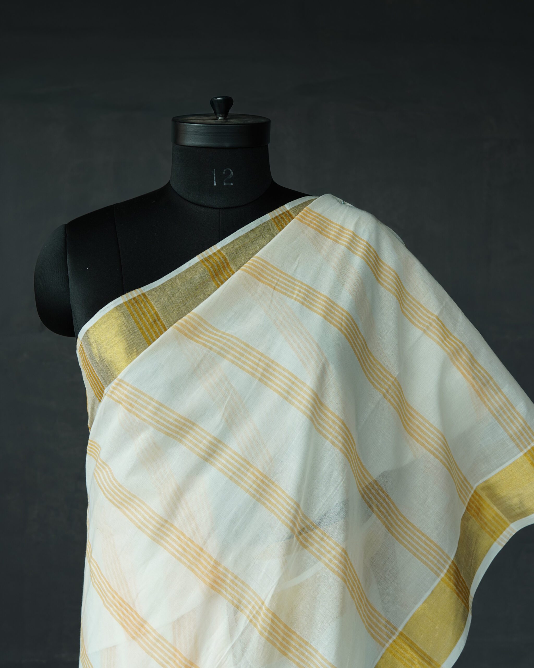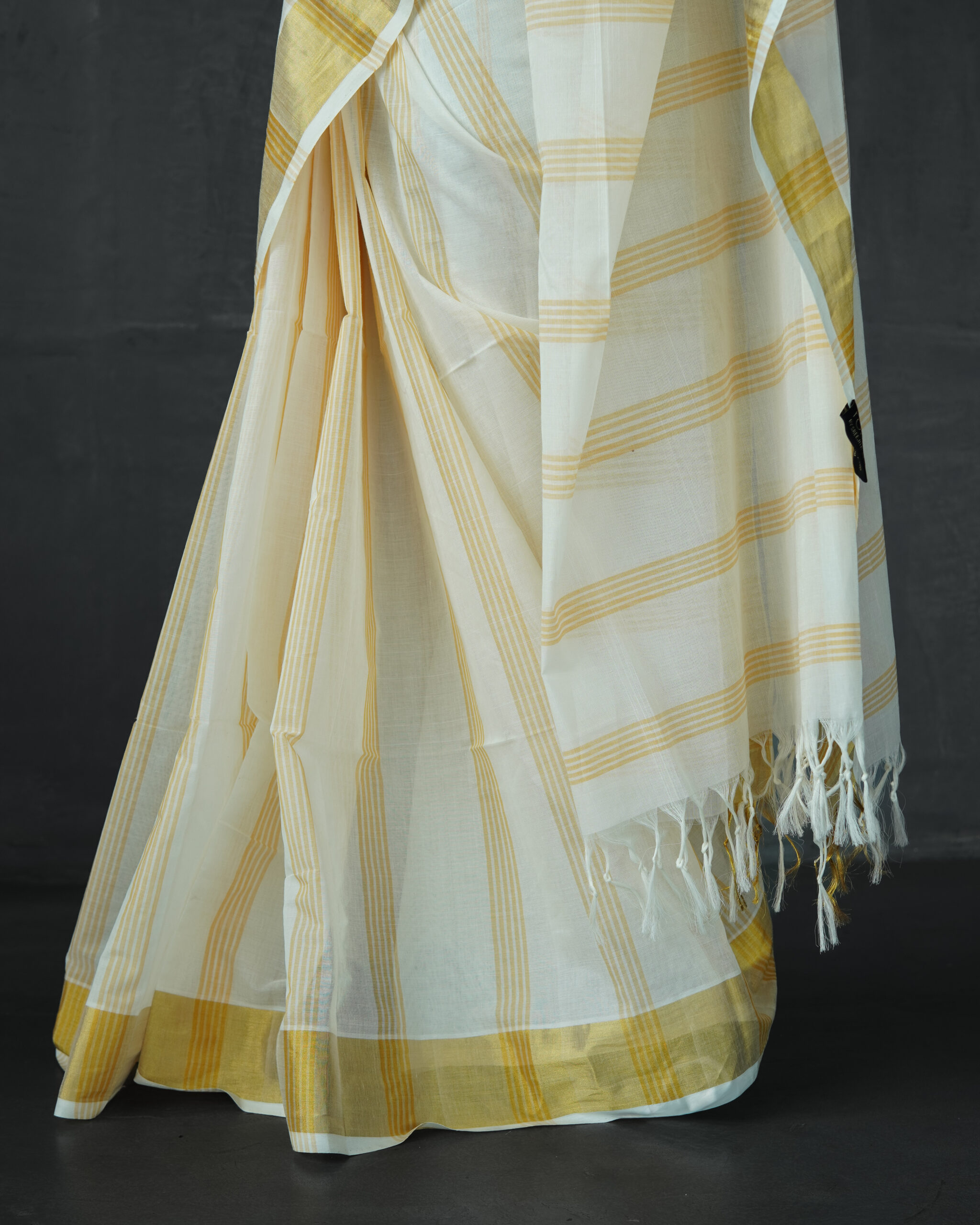 We use half-fine tested kasavu which are gold plated copper threads.