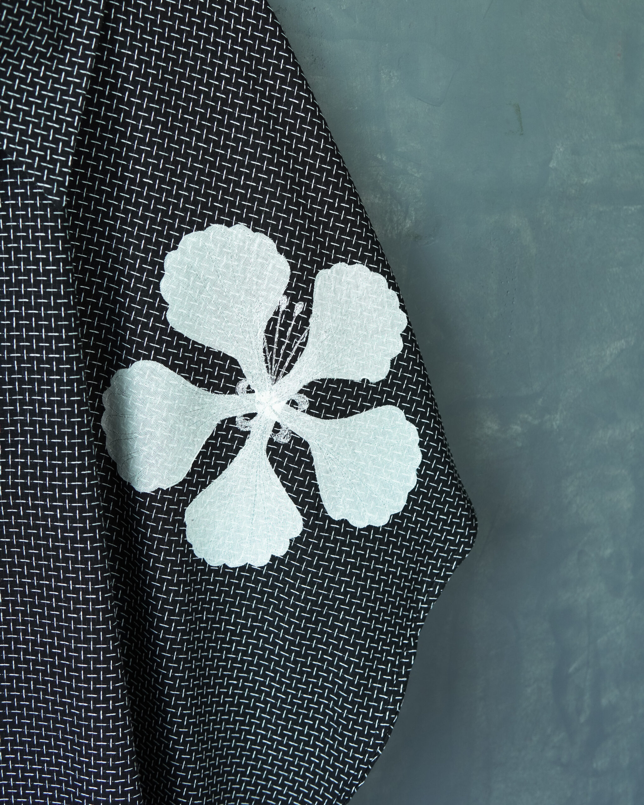 This design is a part of our #everyinchoffabric initiative and unfinished edges are a part of the design sensibility.