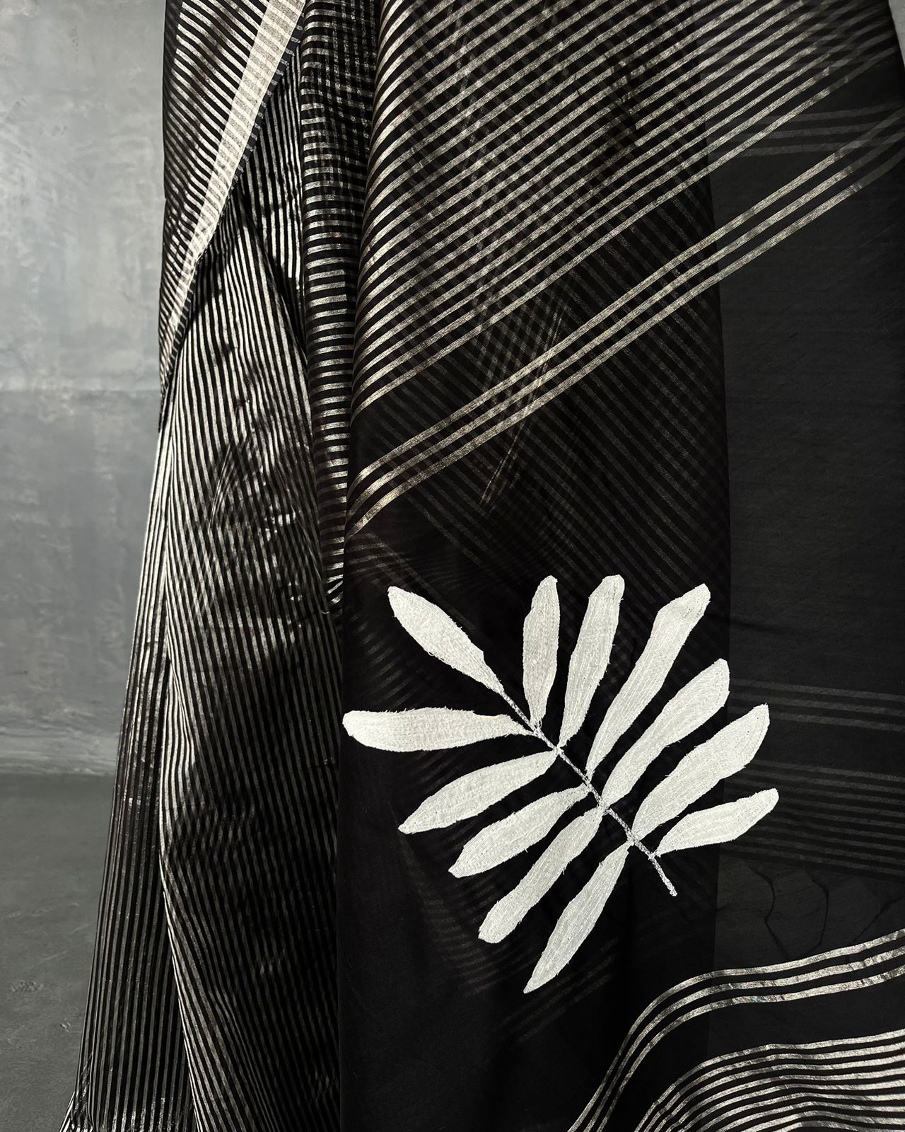 HANDWOVEN COTTON SILK SAREE WITH APPLIQUÉD DETAILS.
