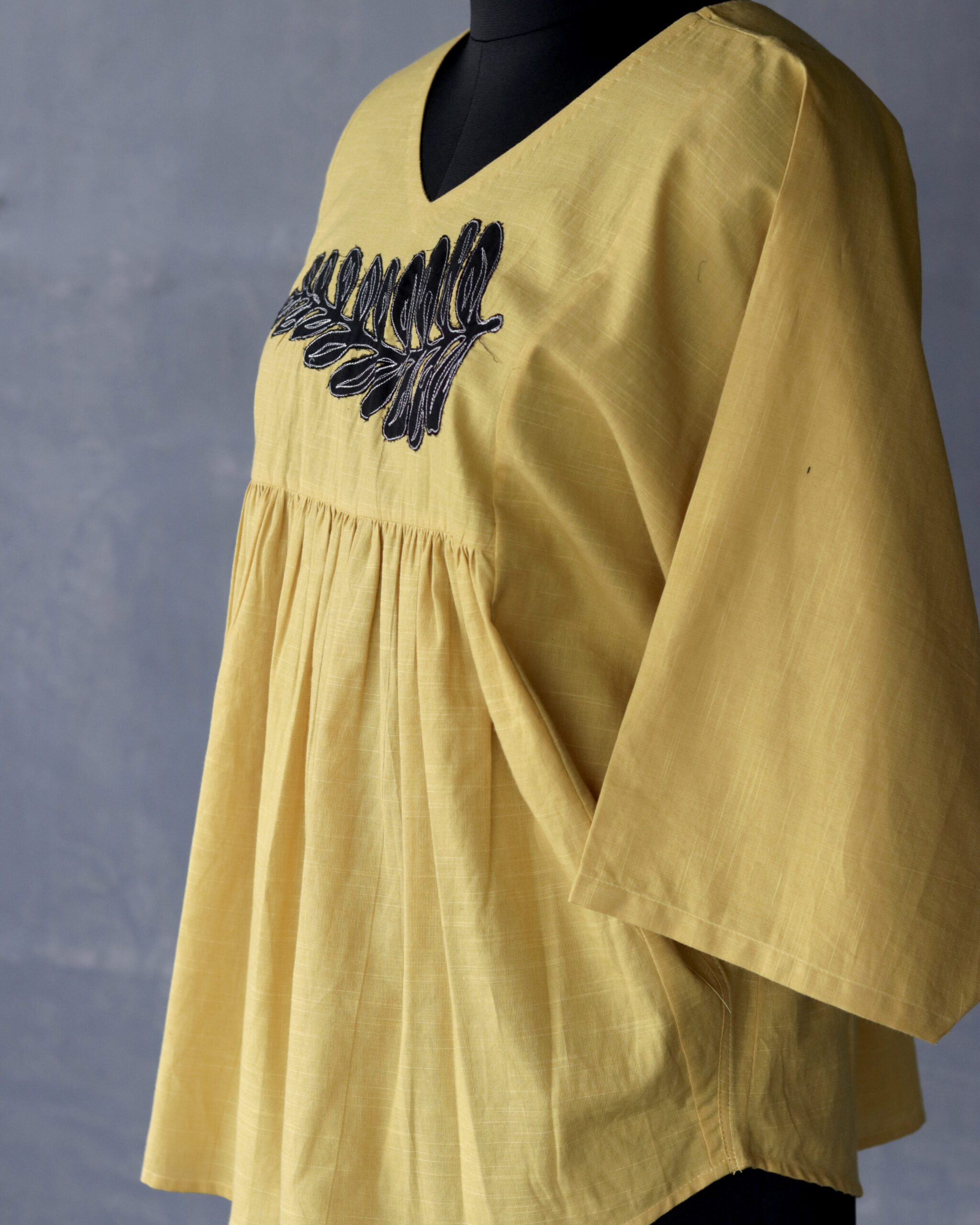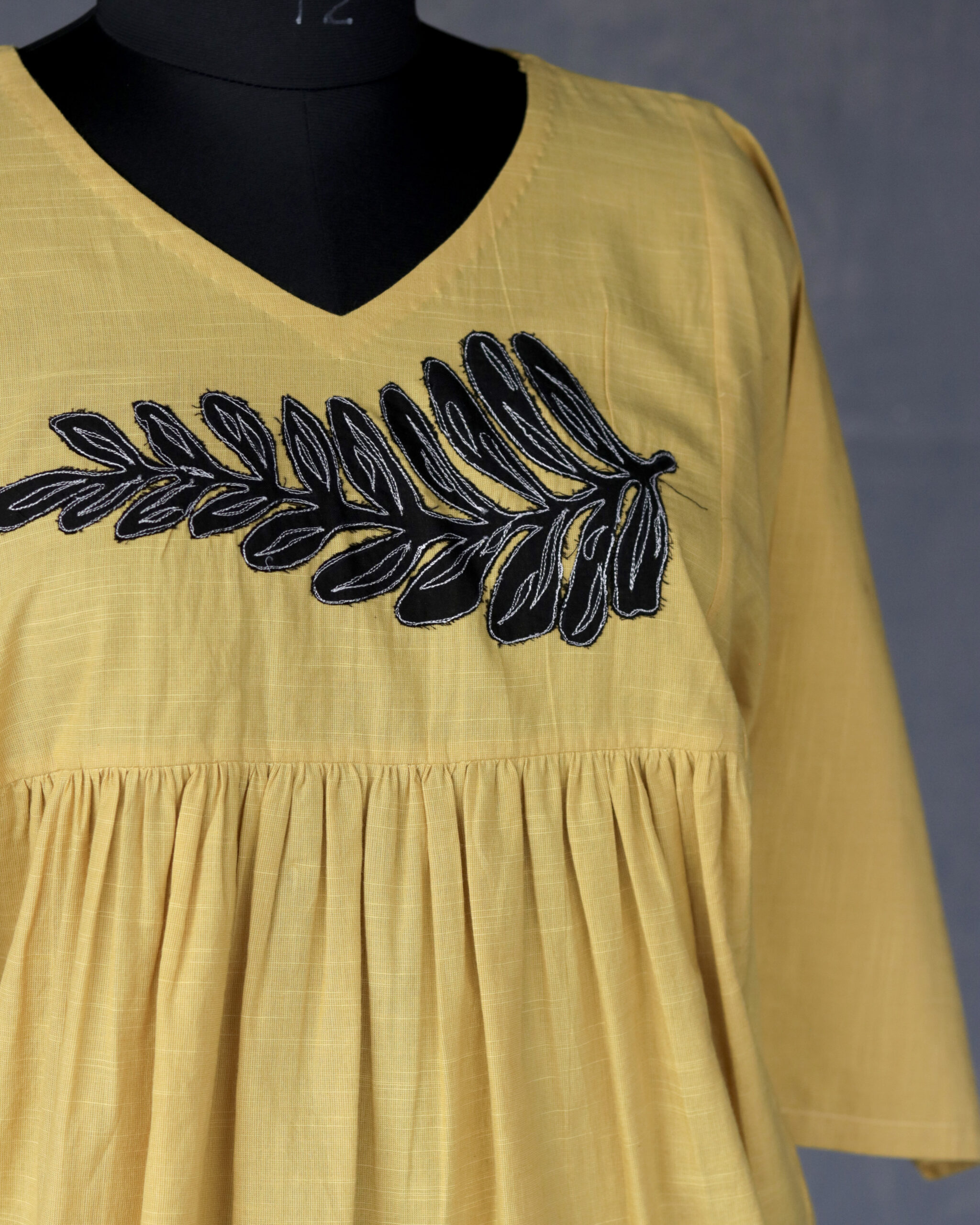 Since this design has multiple pieces of fabric which are appliqued to create this look, to care best for your cloth, we recommend only a dry clean with a reputed drycleaner, soon after use.