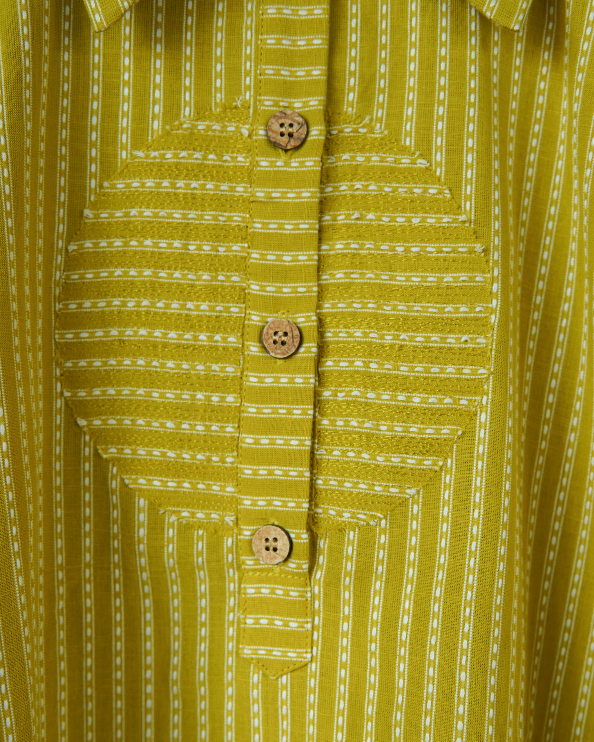 Since this design has multiple pieces of fabric which are appliqued to create this look, to care best for your cloth, we recommend only a dry clean with a reputed drycleaner, soon after use.