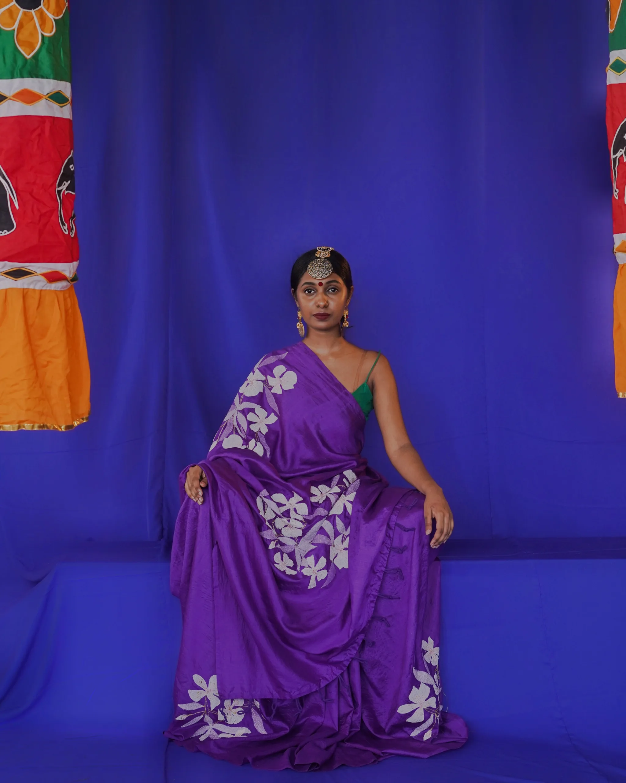 PURE COTTON SILK SAREE WITH FLORAL APPLIQUÉD DETAILS