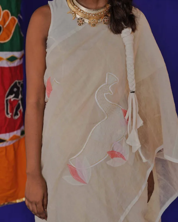 This saree is a part of our #everyinchoffabric initiative and unfinished edges are a part of the design sensibility.