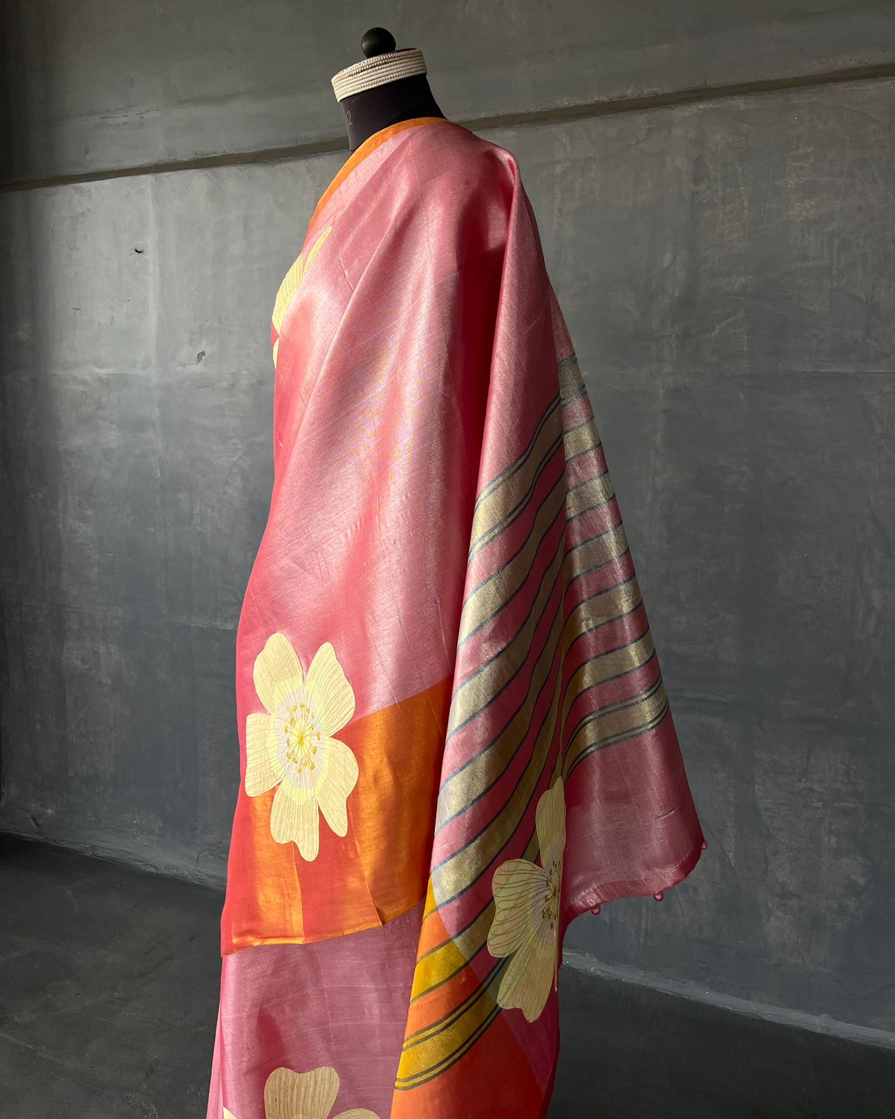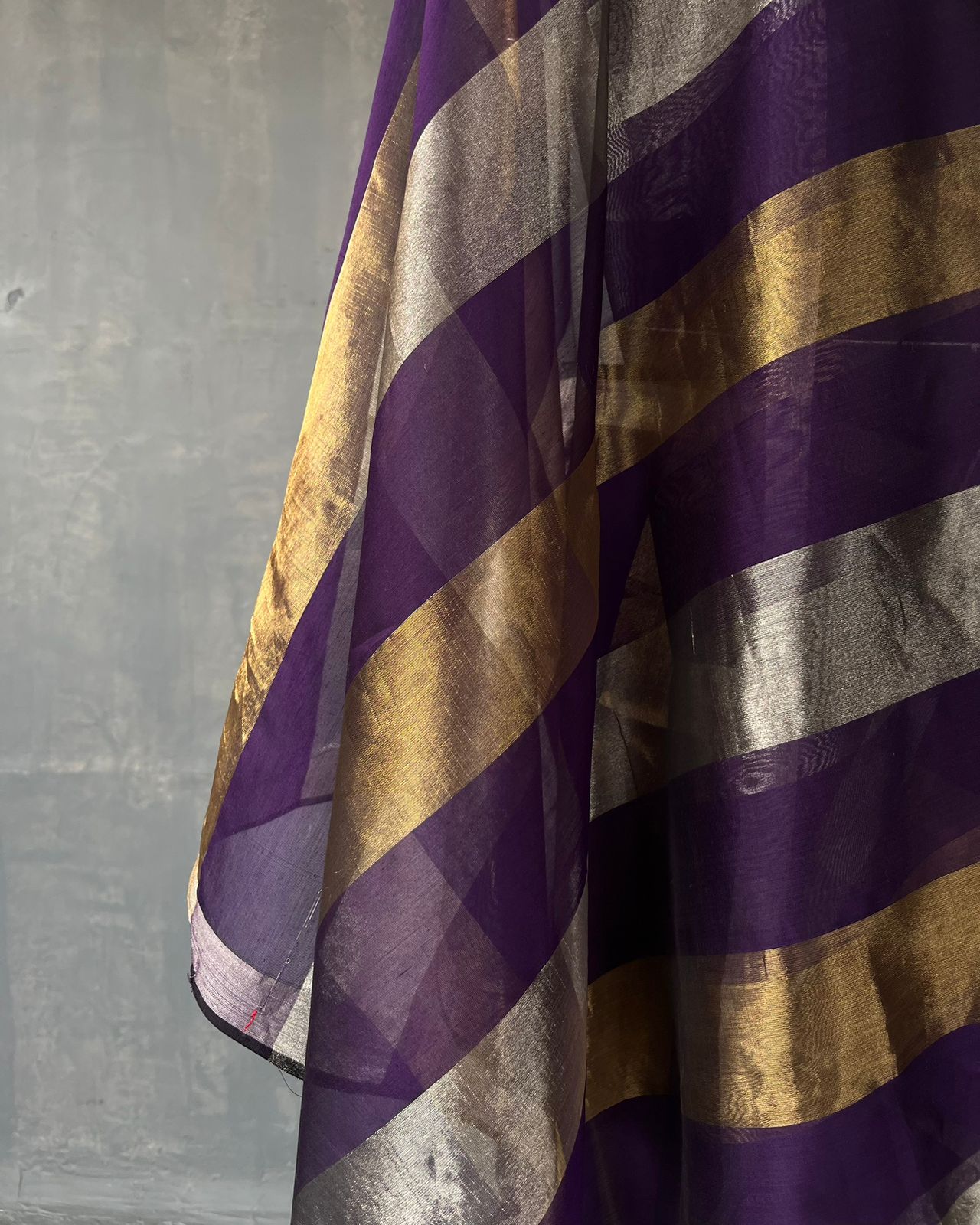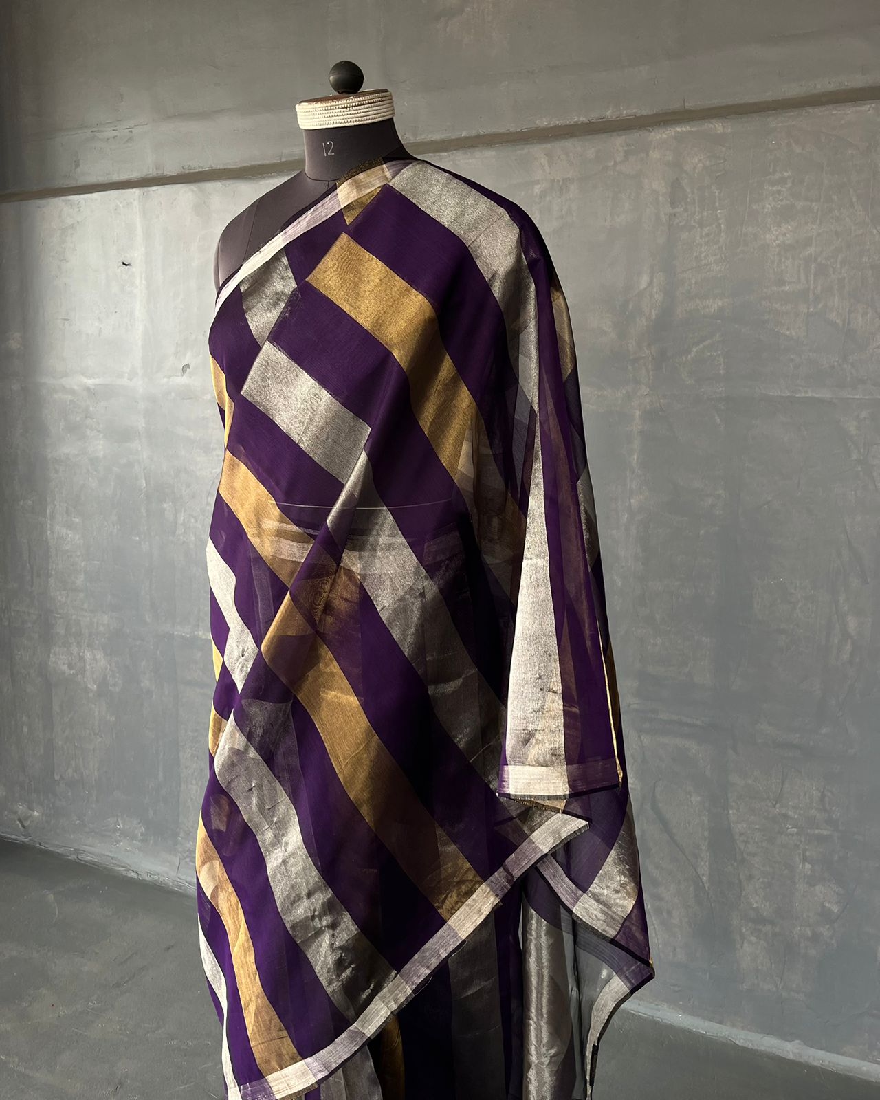 HANDWOVEN COTTON SILK SAREE WITH STRIPED BODY.