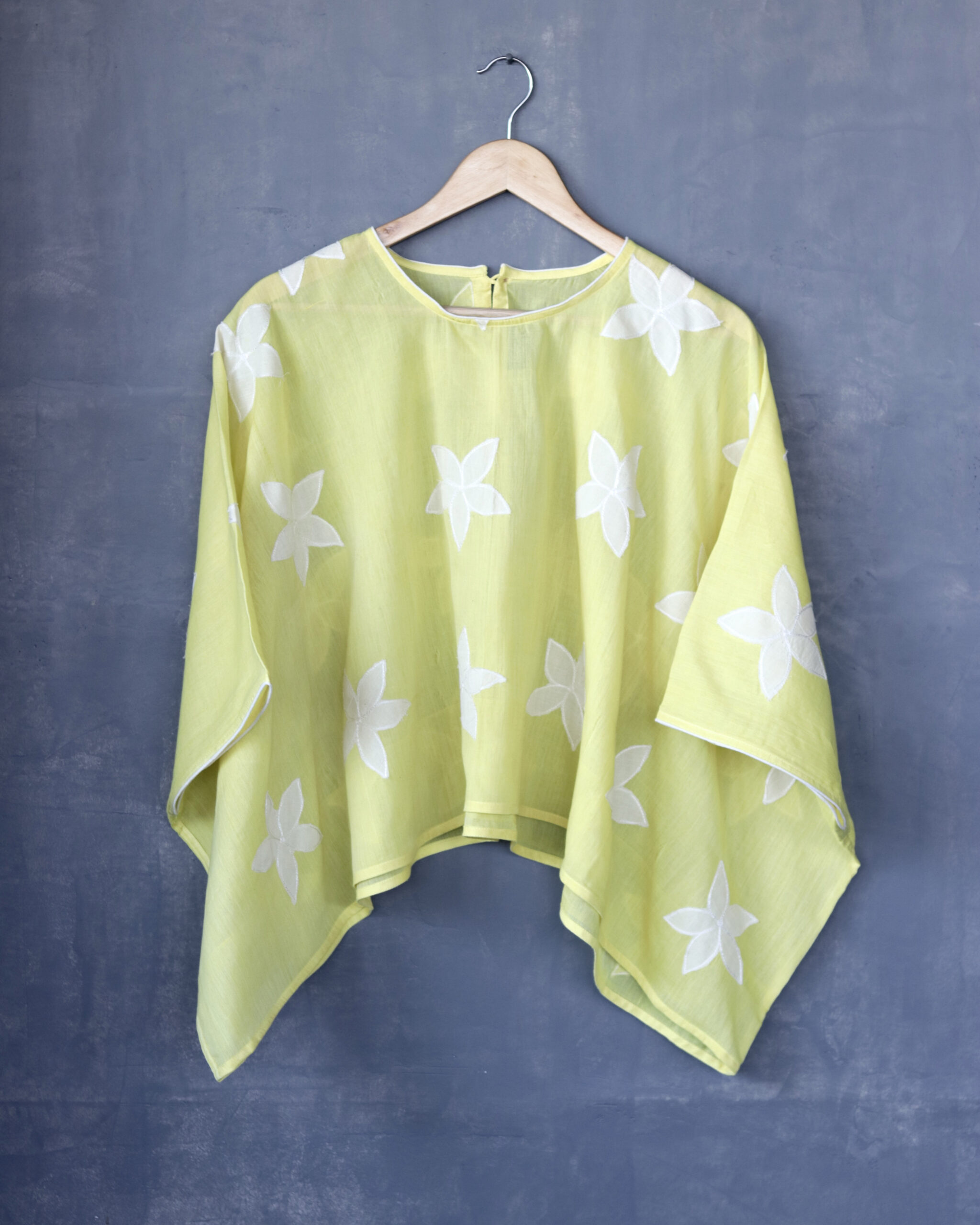 Since this design has multiple pieces of fabric which are appliqued to create this look, to care best for your cloth, we recommend only a dry clean with a reputed drycleaner, soon after use.
