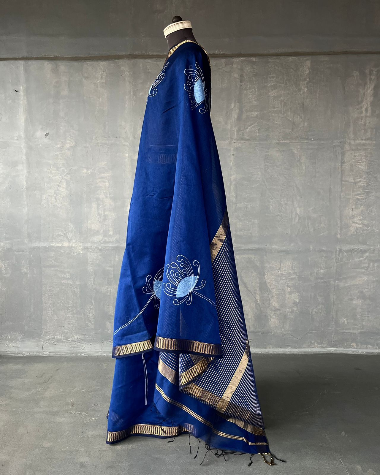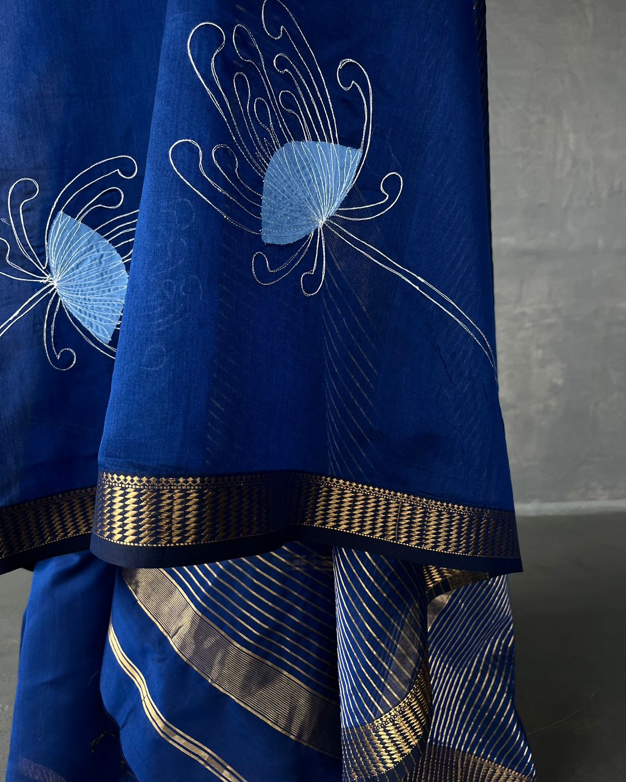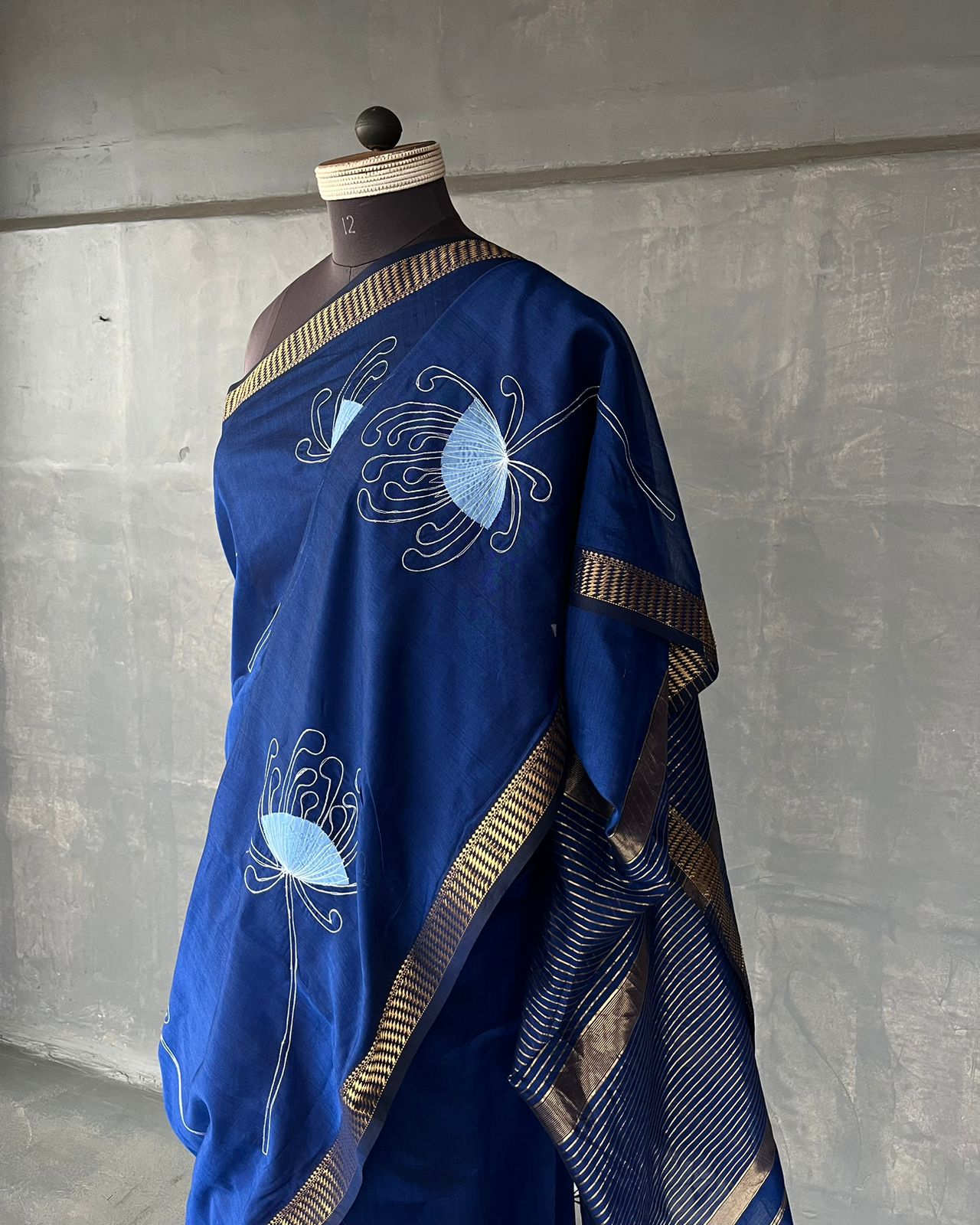 TISSUE COTTON SILK SAREE WITH APPLIQUÉD DETAILS.