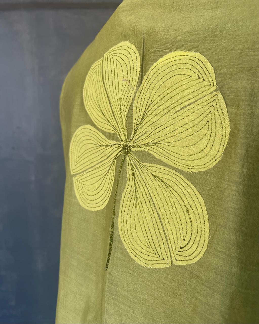 Since this design has multiple pieces of fabric which are appliqued to create this look, to care best for your cloth, we recommend only a dry clean with a reputed drycleaner, soon after use.