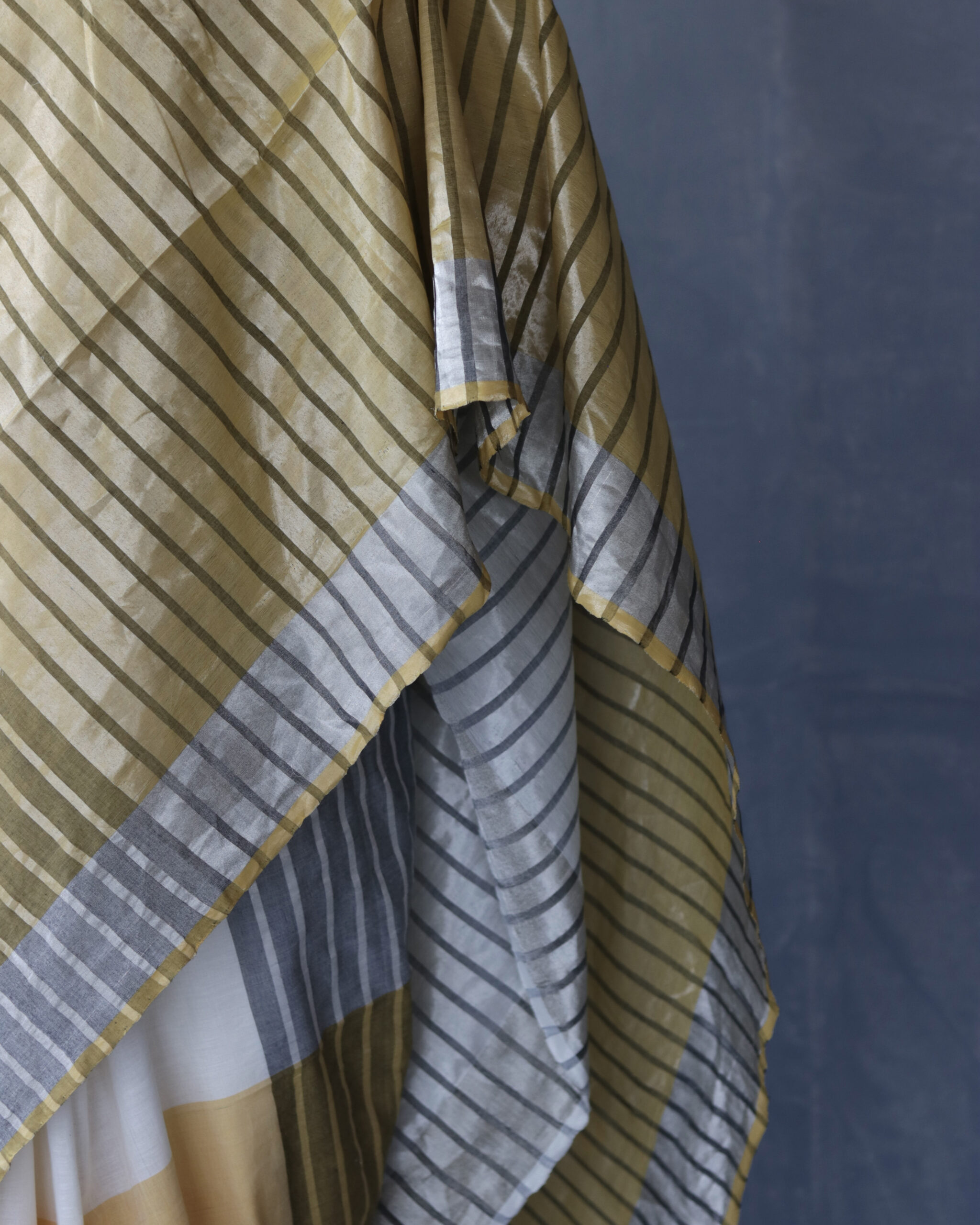 We use half-fine tested kasavu which are gold plated copper threads.