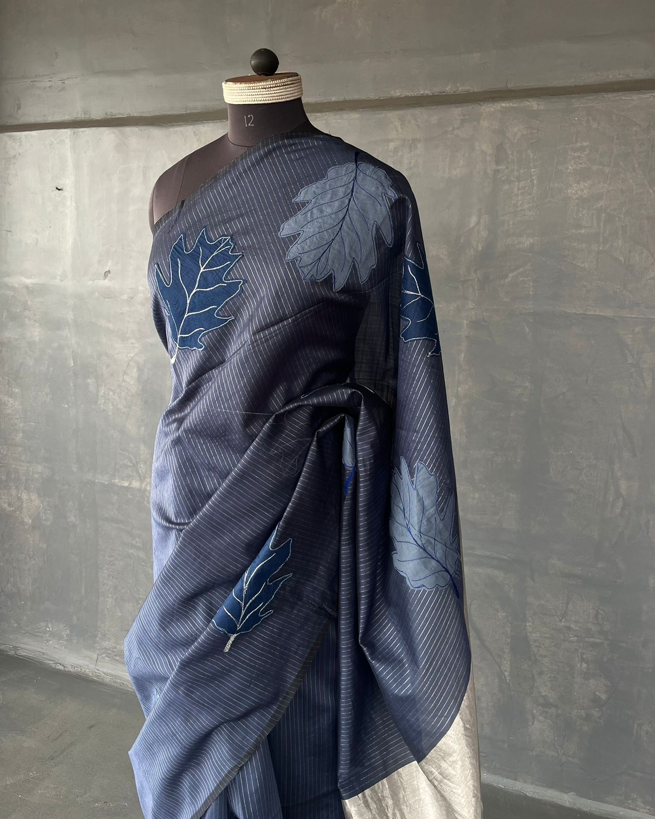 HANDWOVEN COTTON SILK SAREE WITH STRIPED BODY.