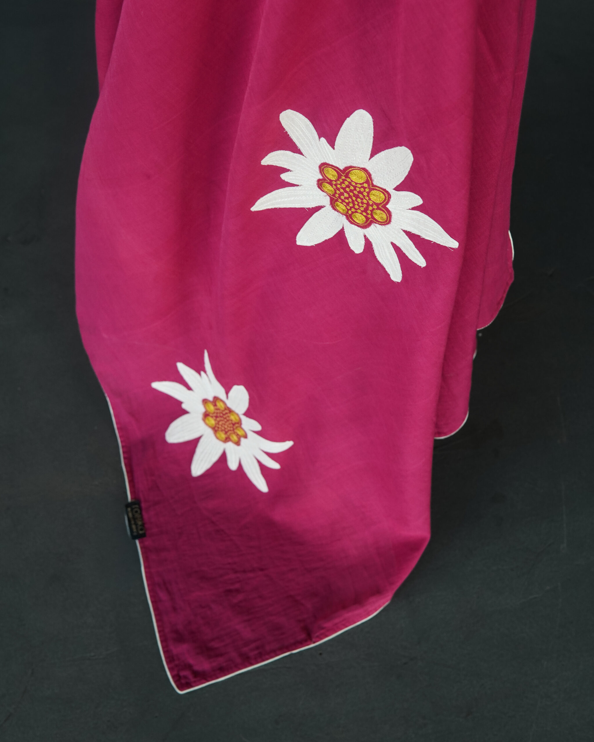 This saree is a part of our #everyinchoffabric initiative and unfinished edges are a part of the design sensibility.