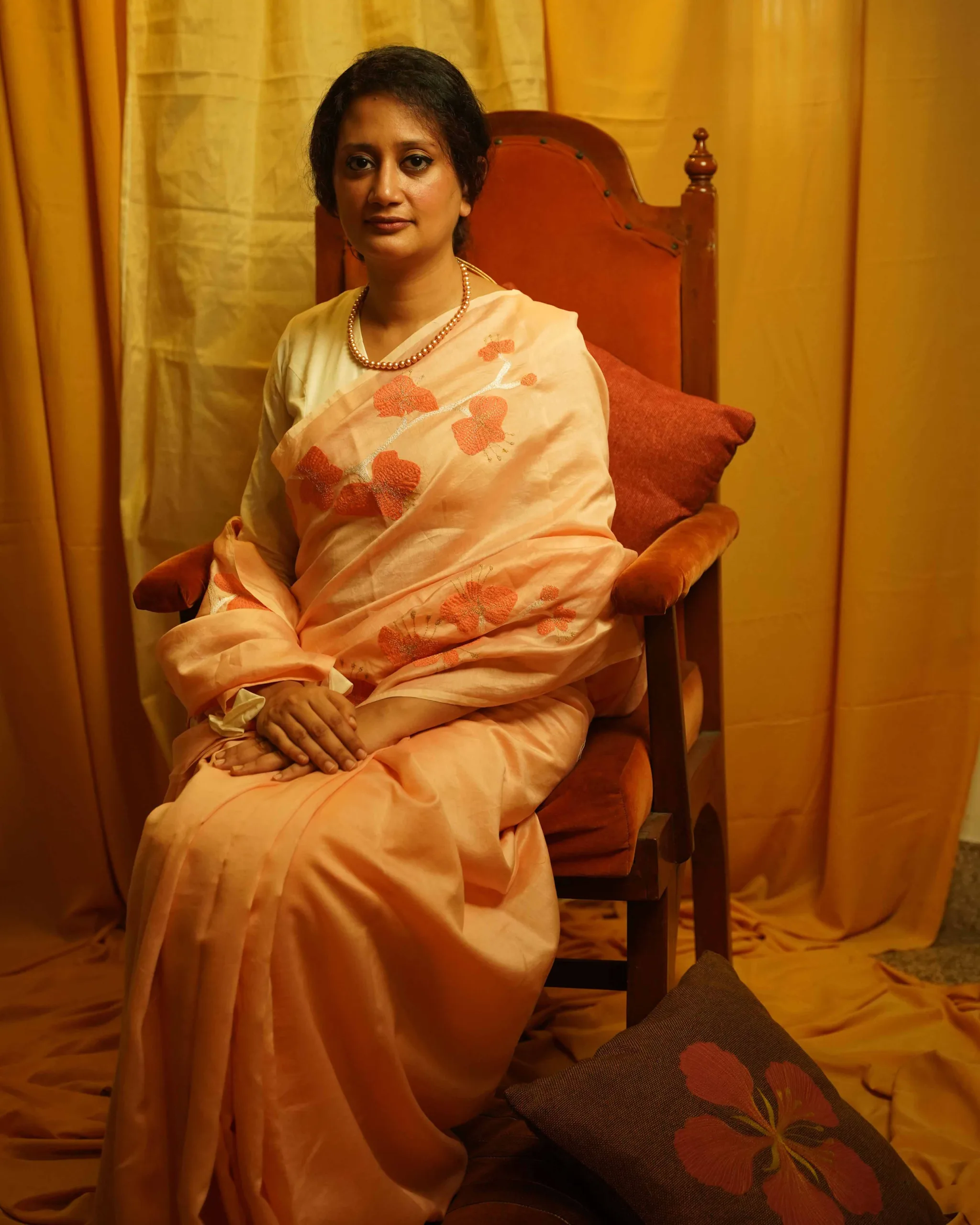 PURE COTTON SILK SAREE WITH FLORAL APPLIQUÉD DETAILS
