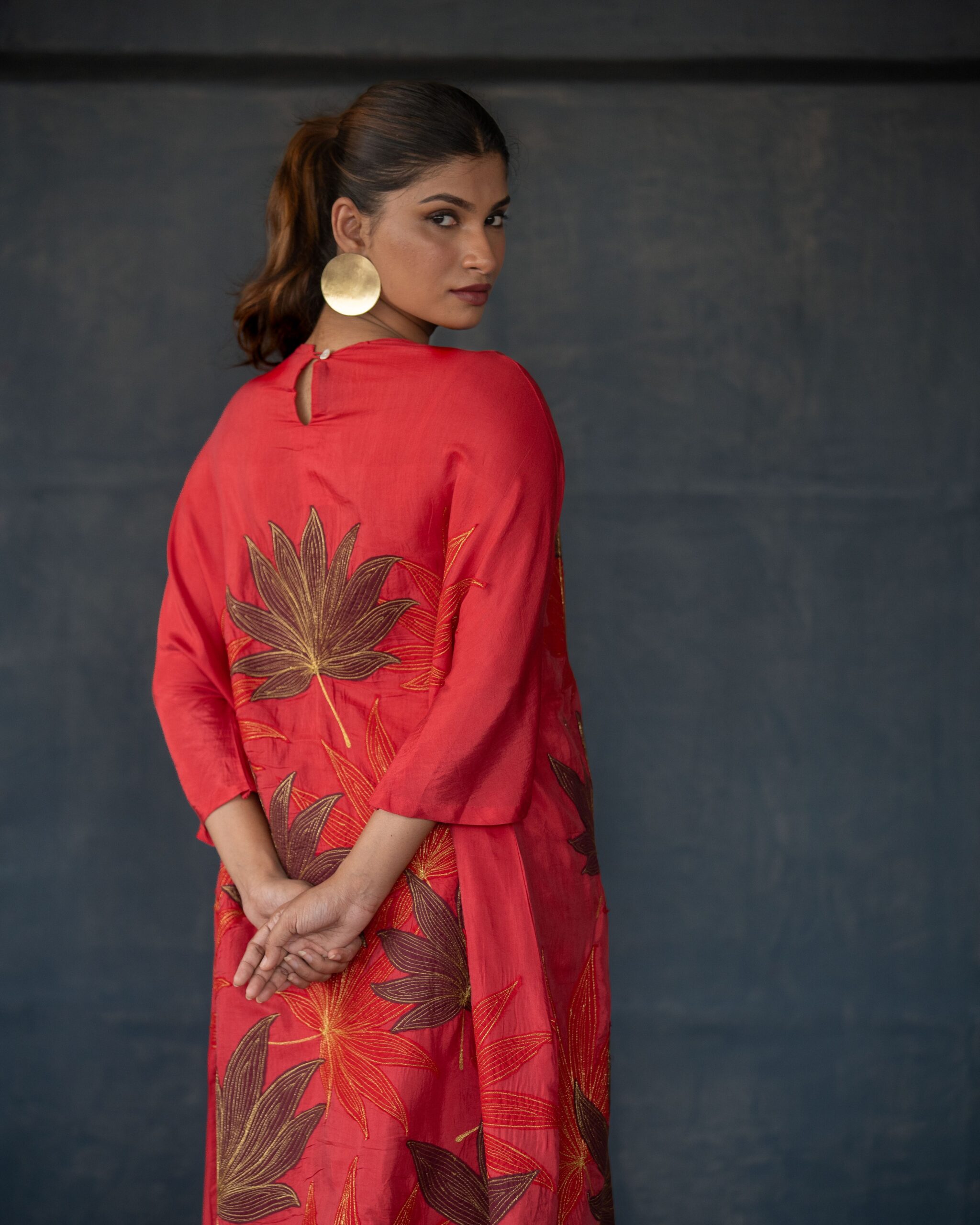 Since this design has multiple pieces of fabric which are appliqued to create this look, to care best for your cloth, we recommend only a dry clean with a reputed drycleaner, soon after use.