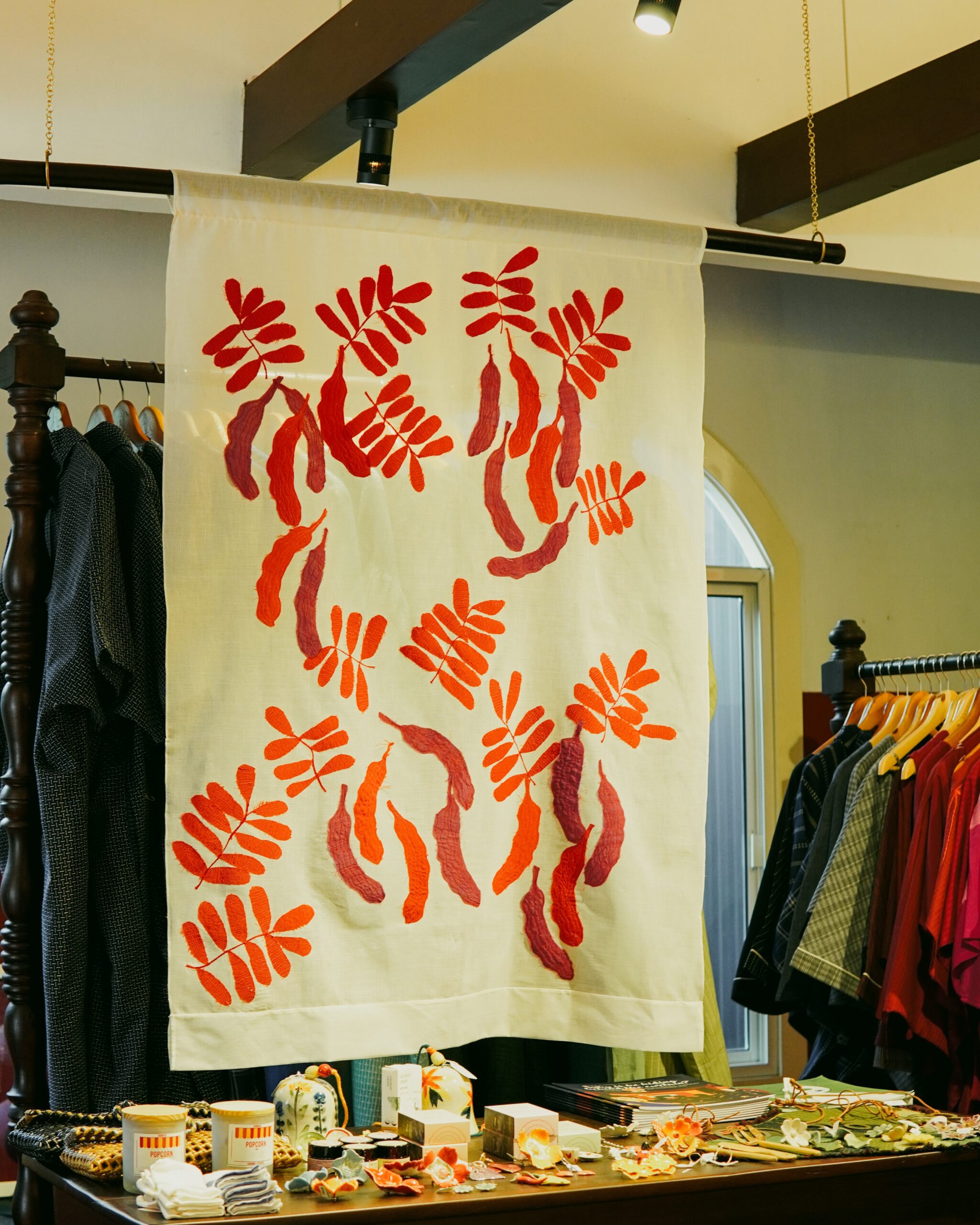 UNFRAMED ART WORK WITH APPLIQUÉD AND EMBROIDERED DETAILS