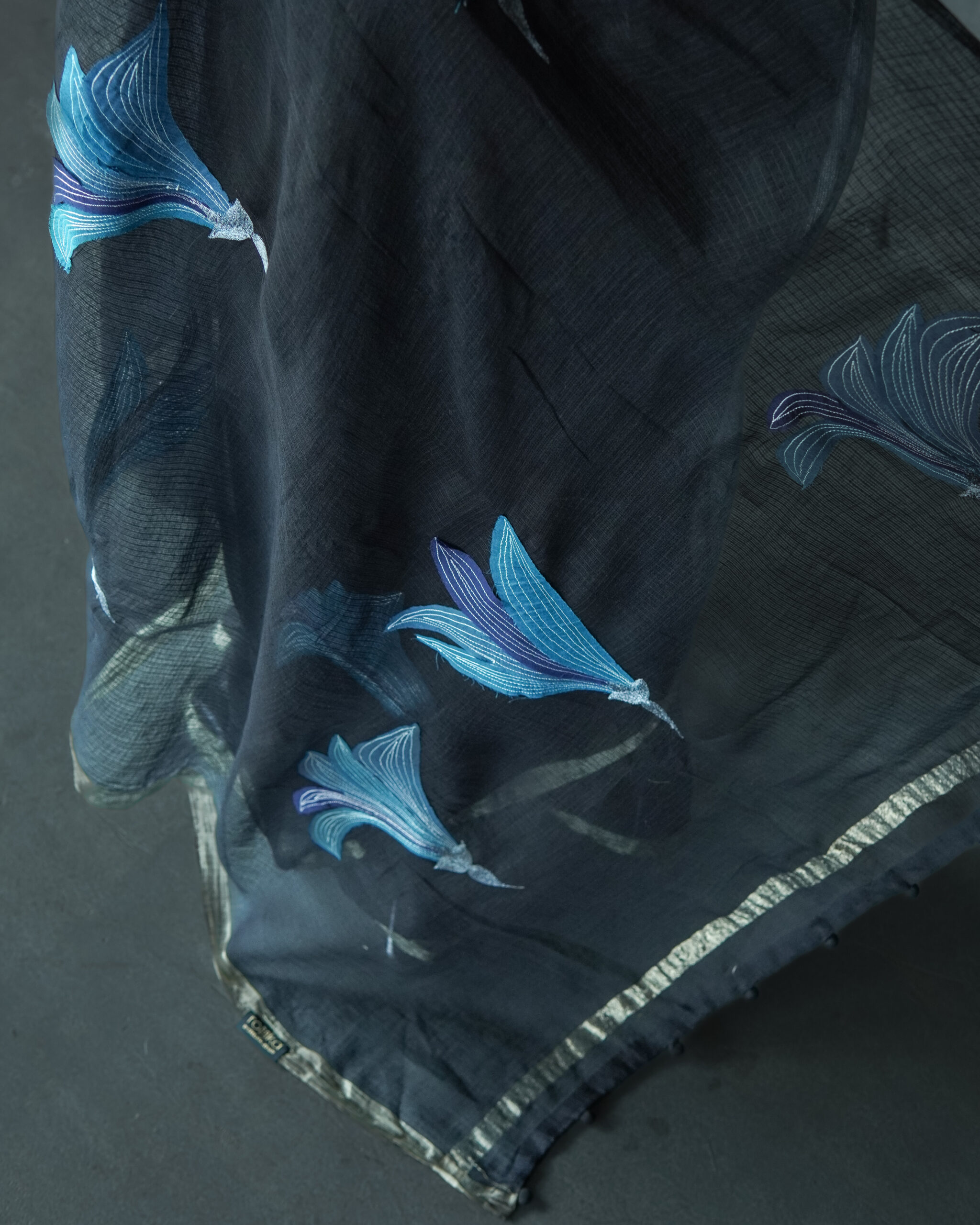 COTTON KOTA SAREE WITH FLORAL APPLIQUÉD DETAILS