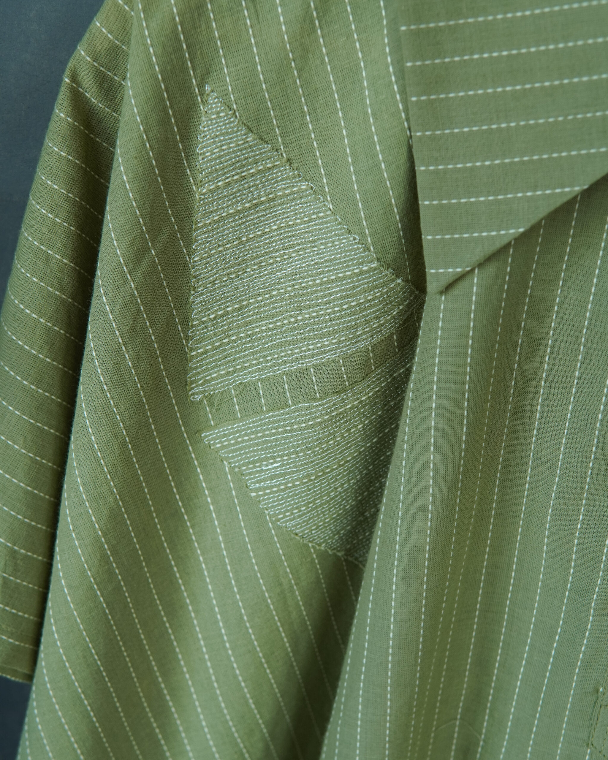 This design is a part of our #everyinchoffabric initiative and unfinished edges are a part of the design sensibility.