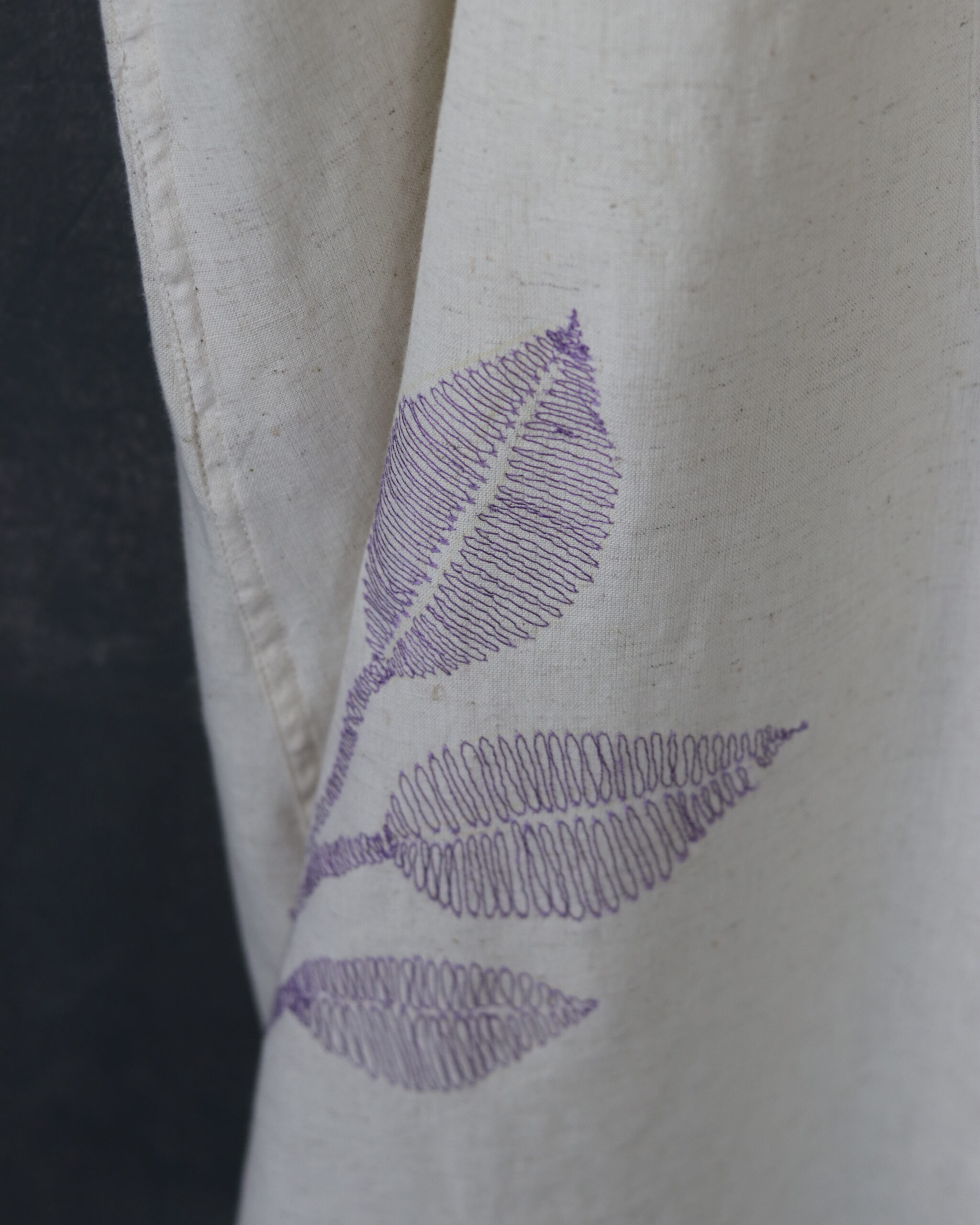 This design is a part of our #everyinchoffabric initiative and unfinished edges are a part of the design sensibility.