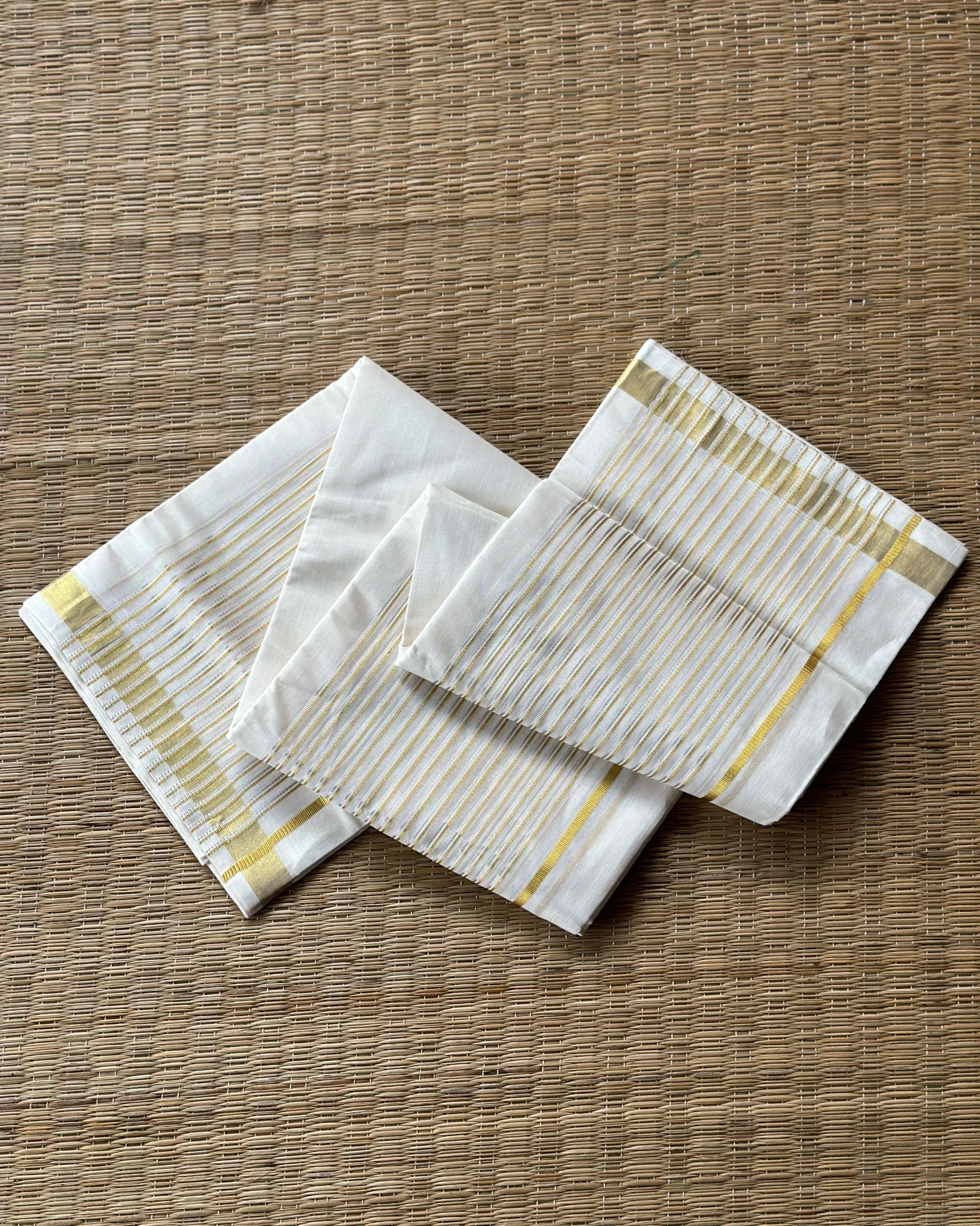 We use half-fine tested kasavu which are gold plated copper threads.