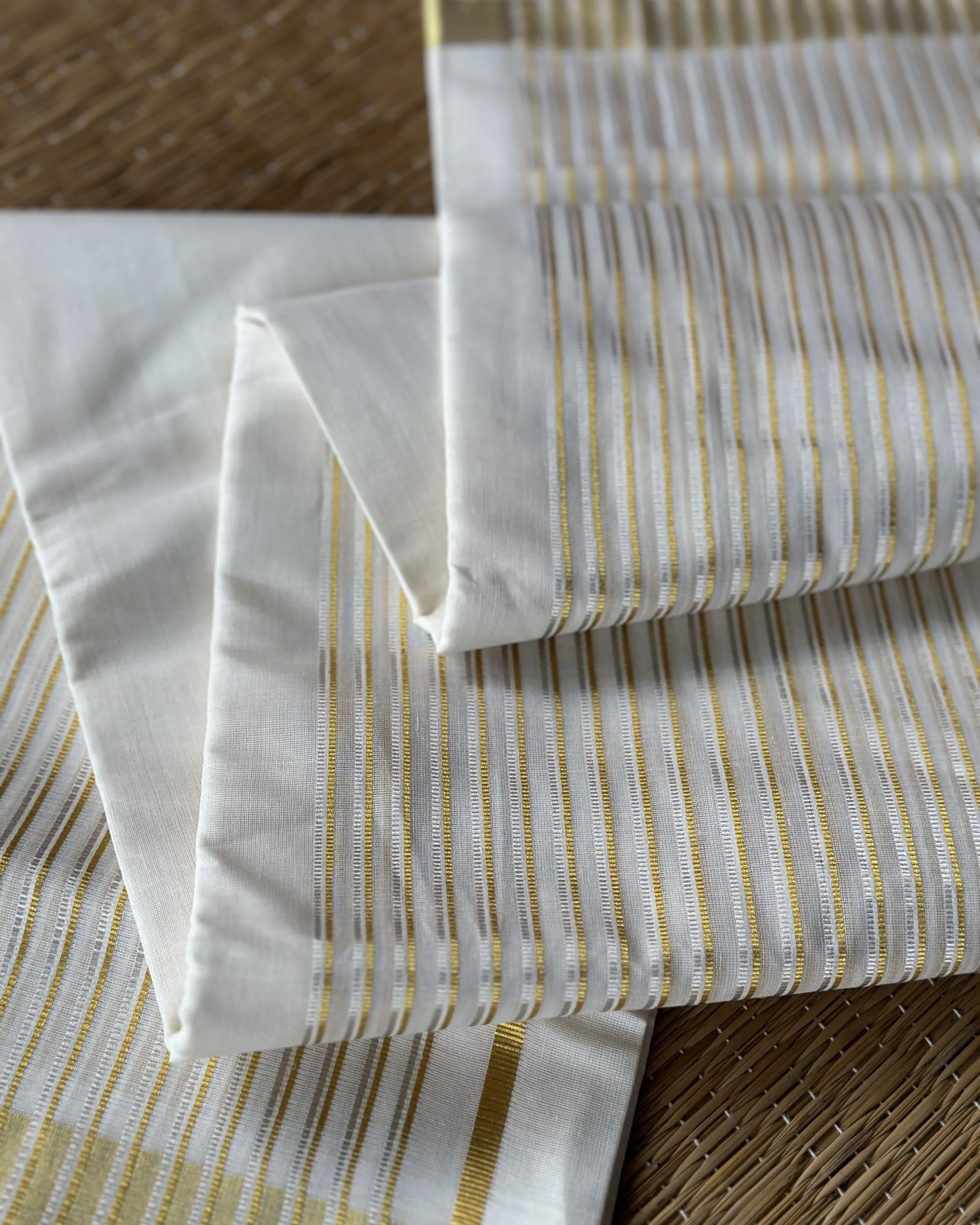 The double mundu can be worn by all genders. It is a single piece of fabric, usually 4 metres long, folded into two and worn as a single drape.