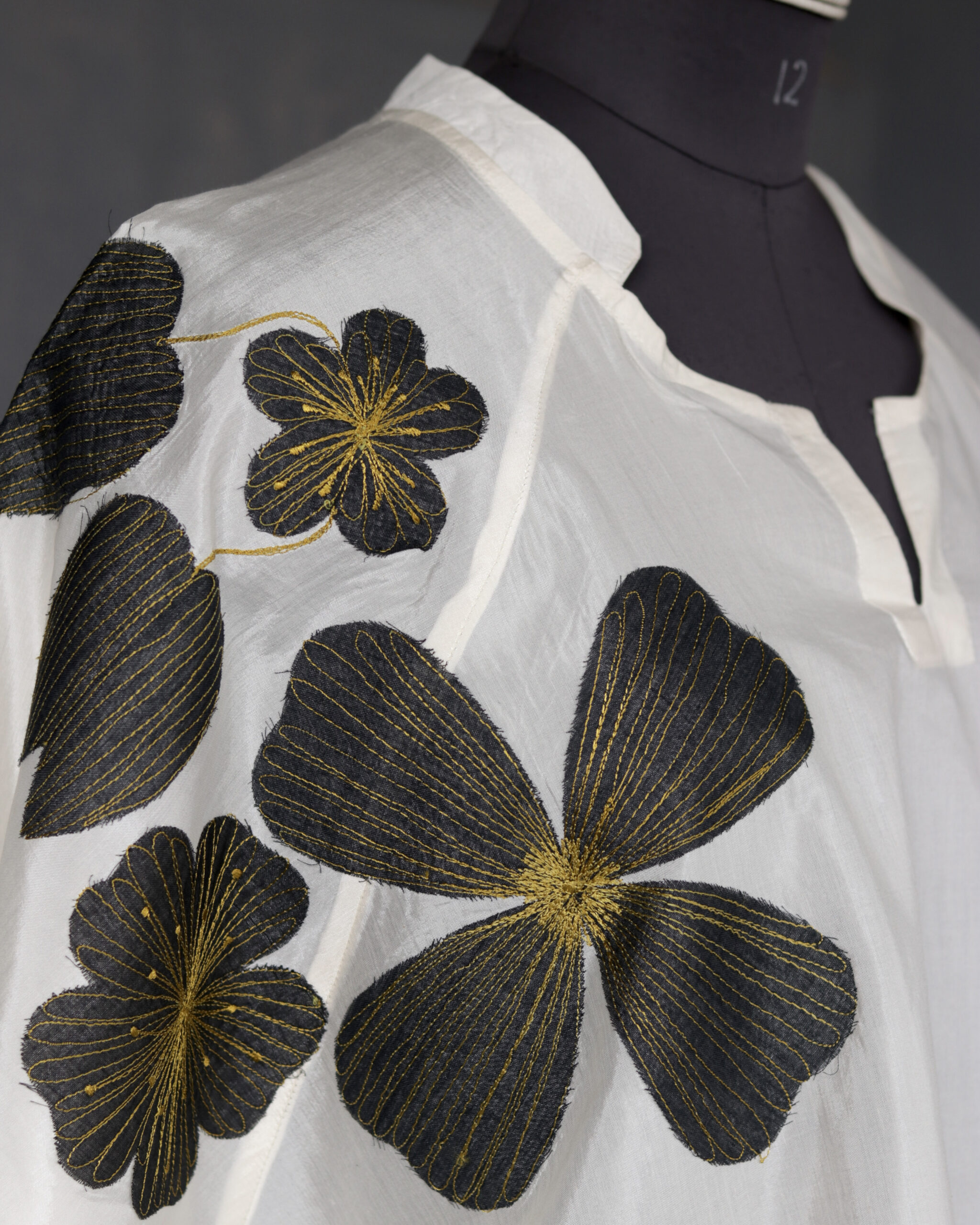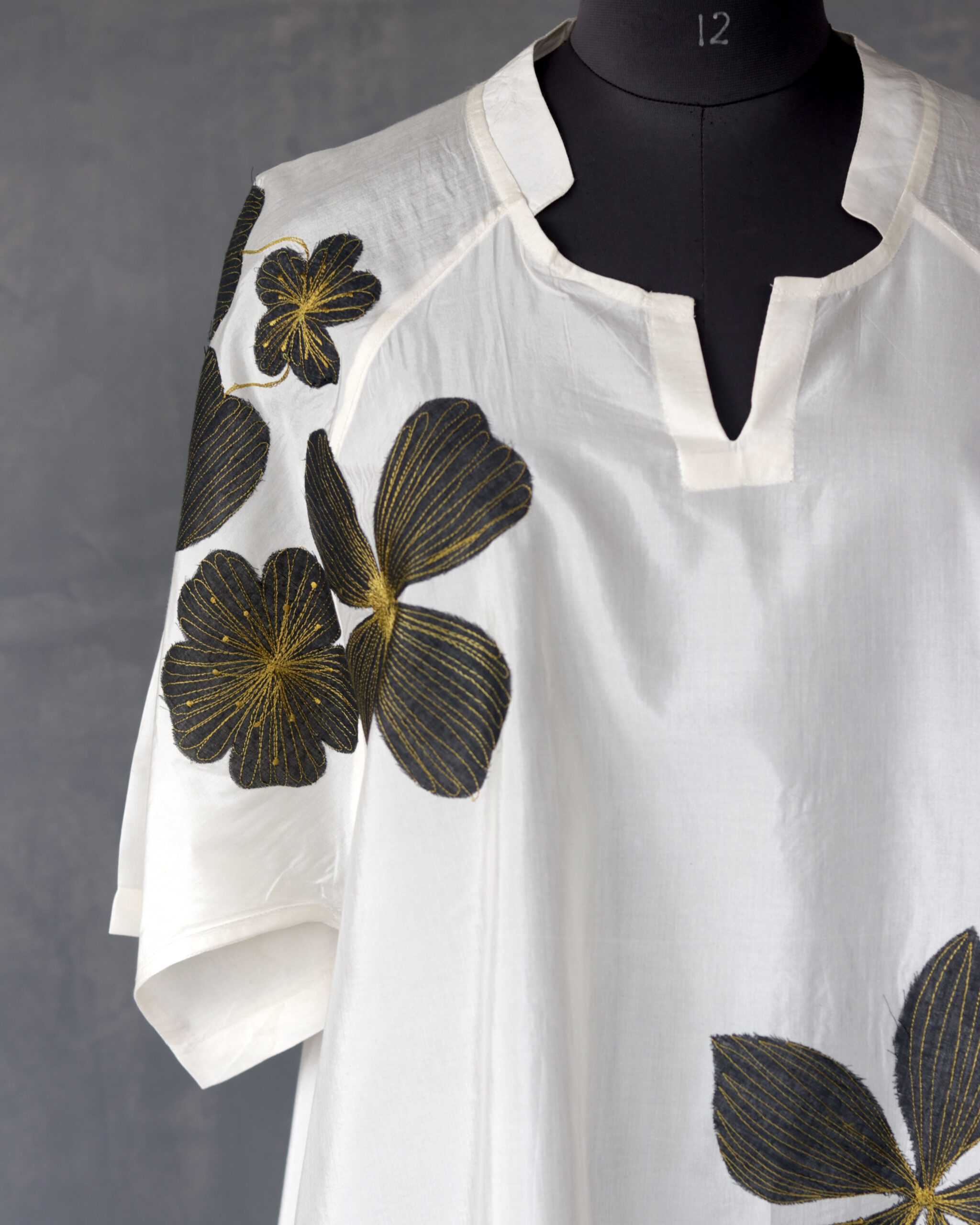 Since this design has multiple pieces of fabric which are appliqued to create this look, to care best for your cloth, we recommend only a dry clean with a reputed drycleaner, soon after use.