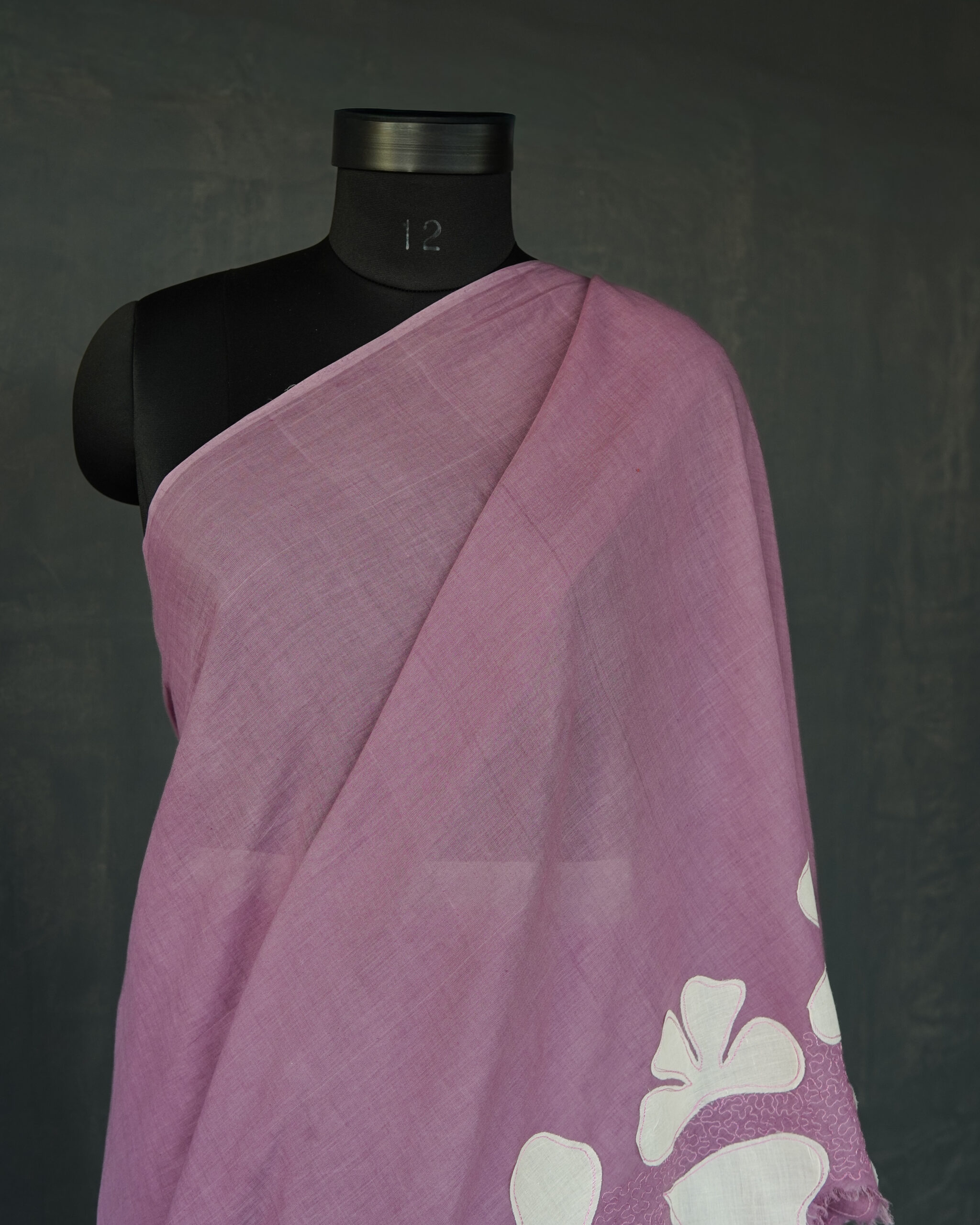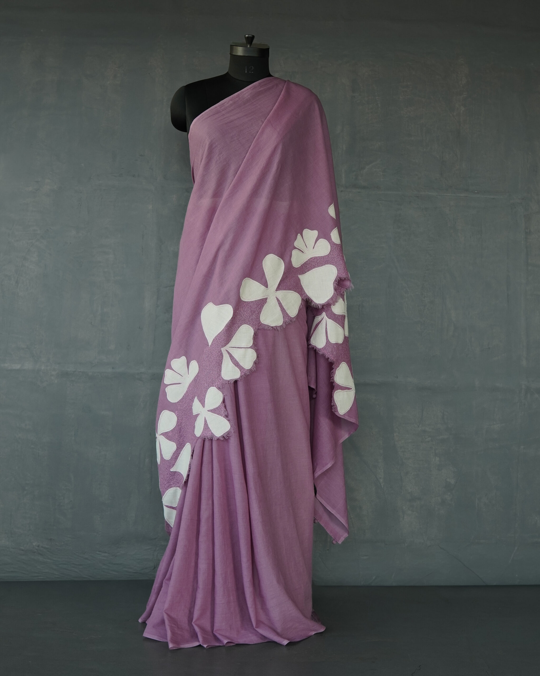 HANDWOVEN COTTON SAREE WITH APPLIQUE AND EMBROIDERY  DETAILS .