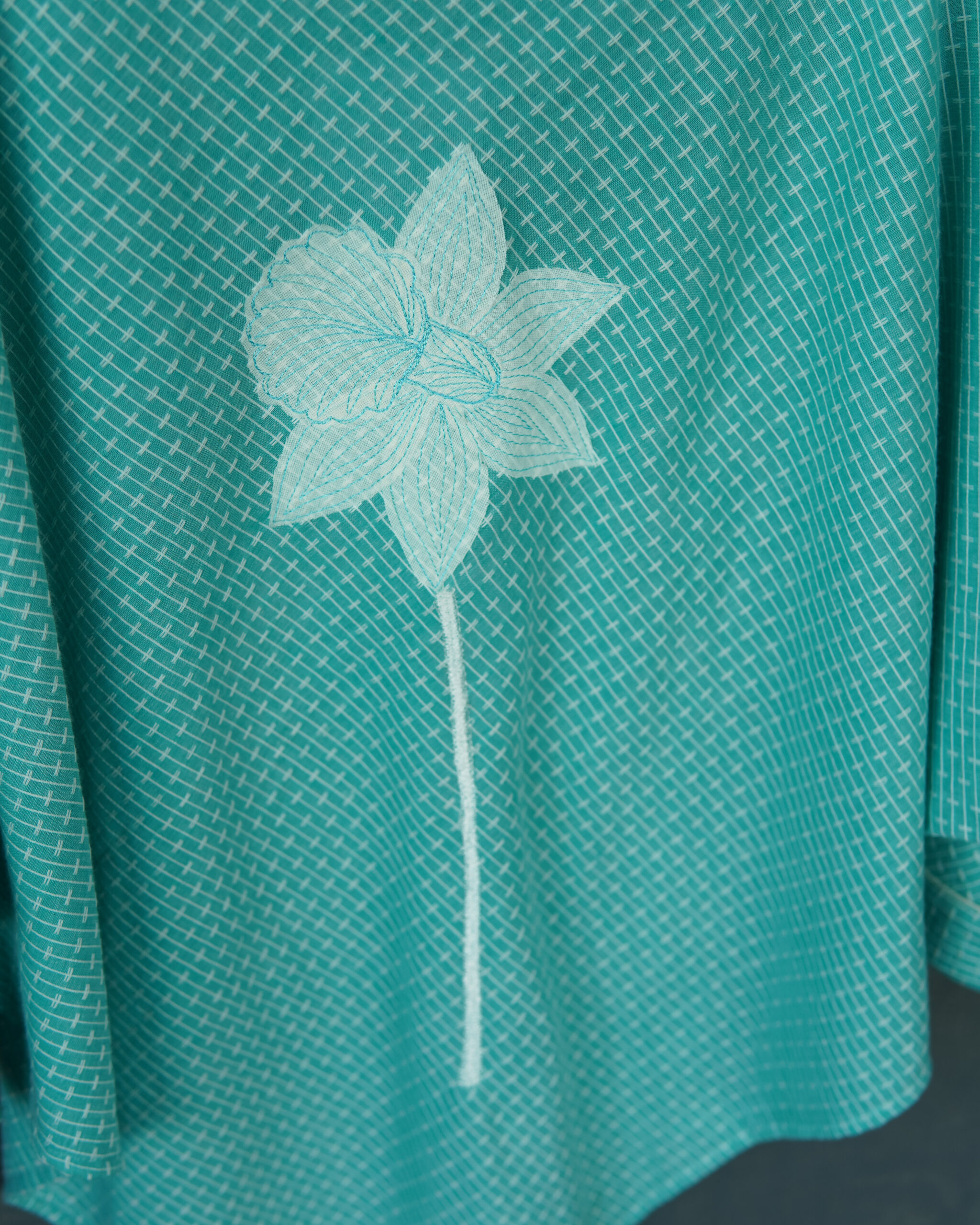 Since this design has multiple pieces of fabric which are appliqued to create this look, to care best for your cloth, we recommend only a dry clean with a reputed drycleaner, soon after use.