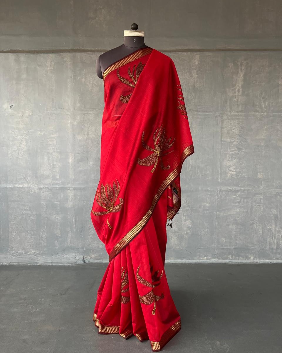 TISSUE COTTON SILK SAREE WITH APPLIQUÉD DETAILS.